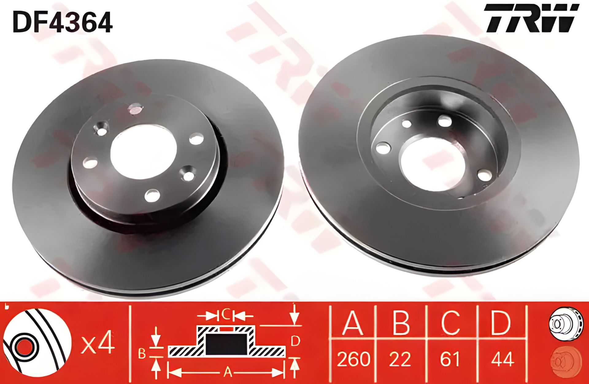 Тормозной диск (1 шт.) для NISSAN Micra/Micra CC/Note, TRW (DF4364)