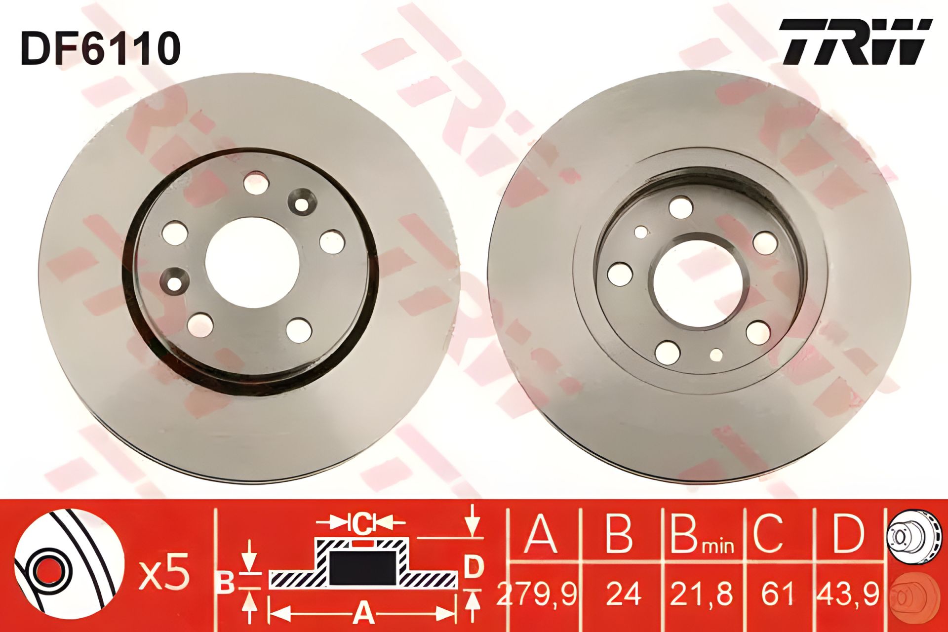 Тормозной диск RENAULT Kangoo F 08, TRW (DF6110)