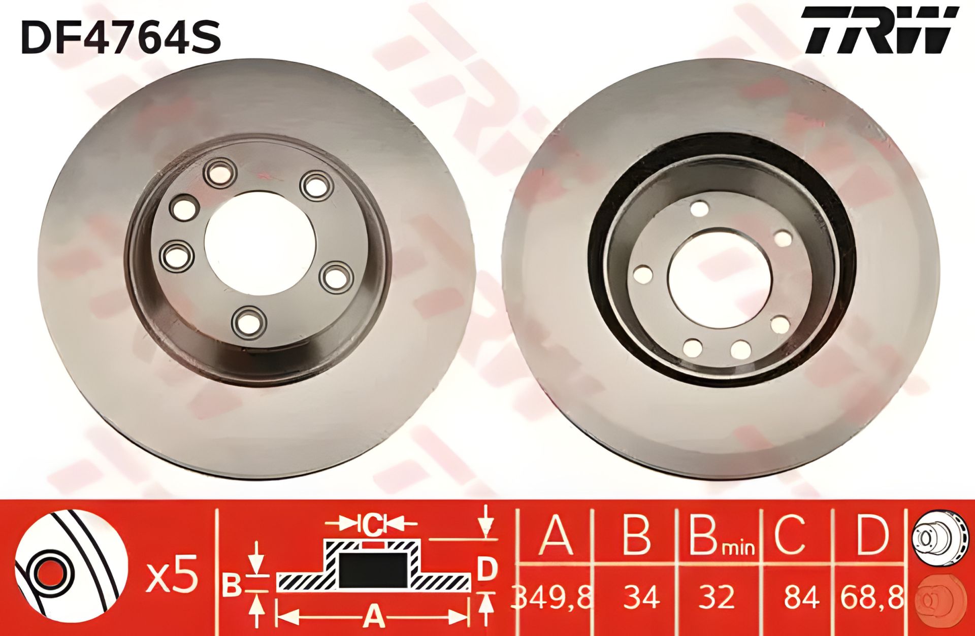 Тормозной диск для AUDI Q7, VW TOUAREG, TRW (DF4764S)