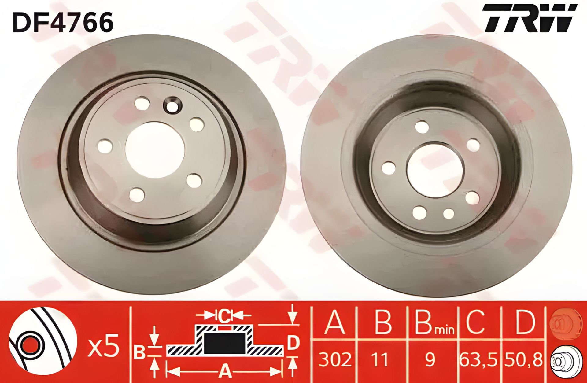 Задний тормозной диск FORD FOCUS, KUGA, MONDEO IV, TRW (DF4766)