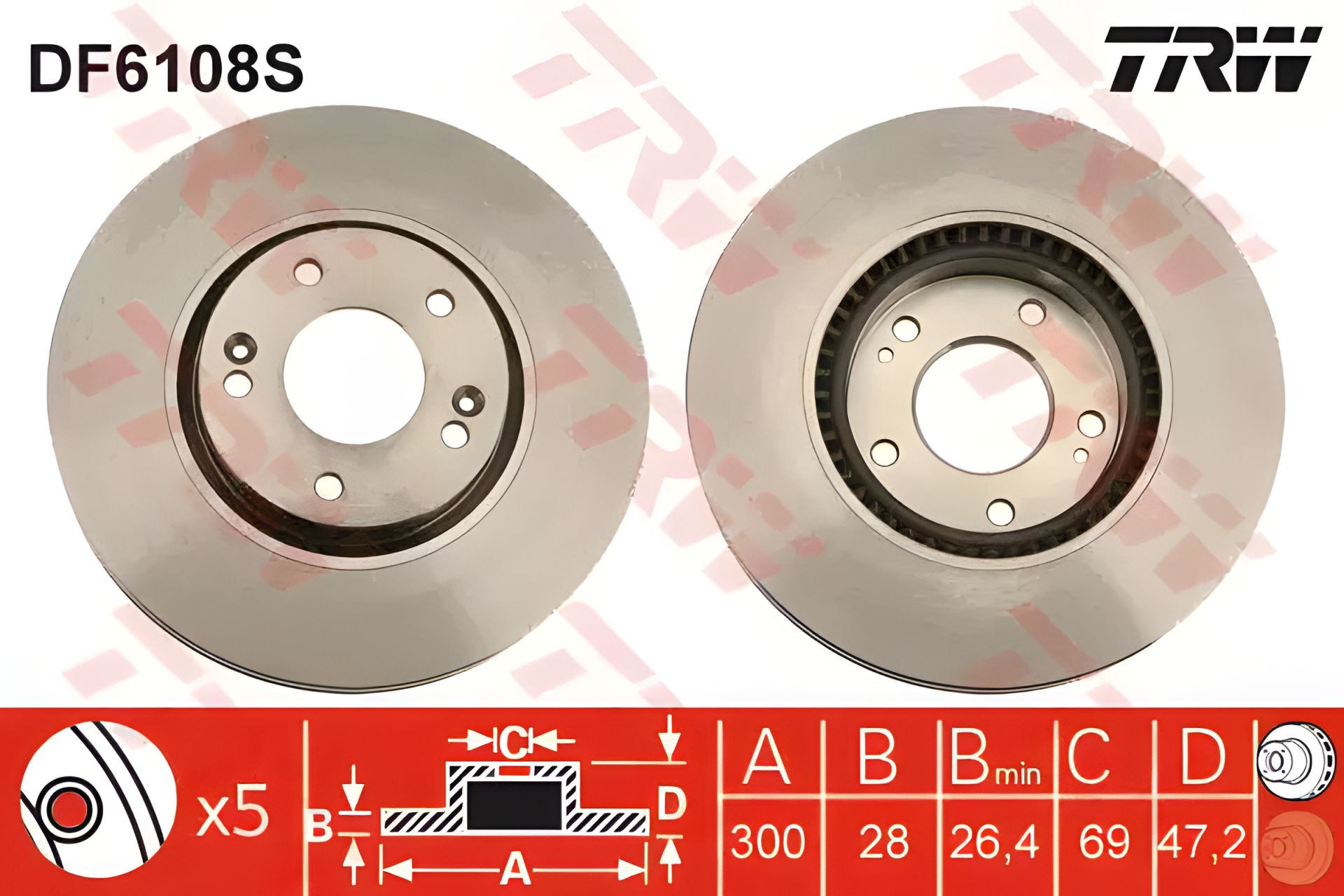 Тормозной диск TRW для HYUNDAI/KIA, Ø300 мм, DF6108S