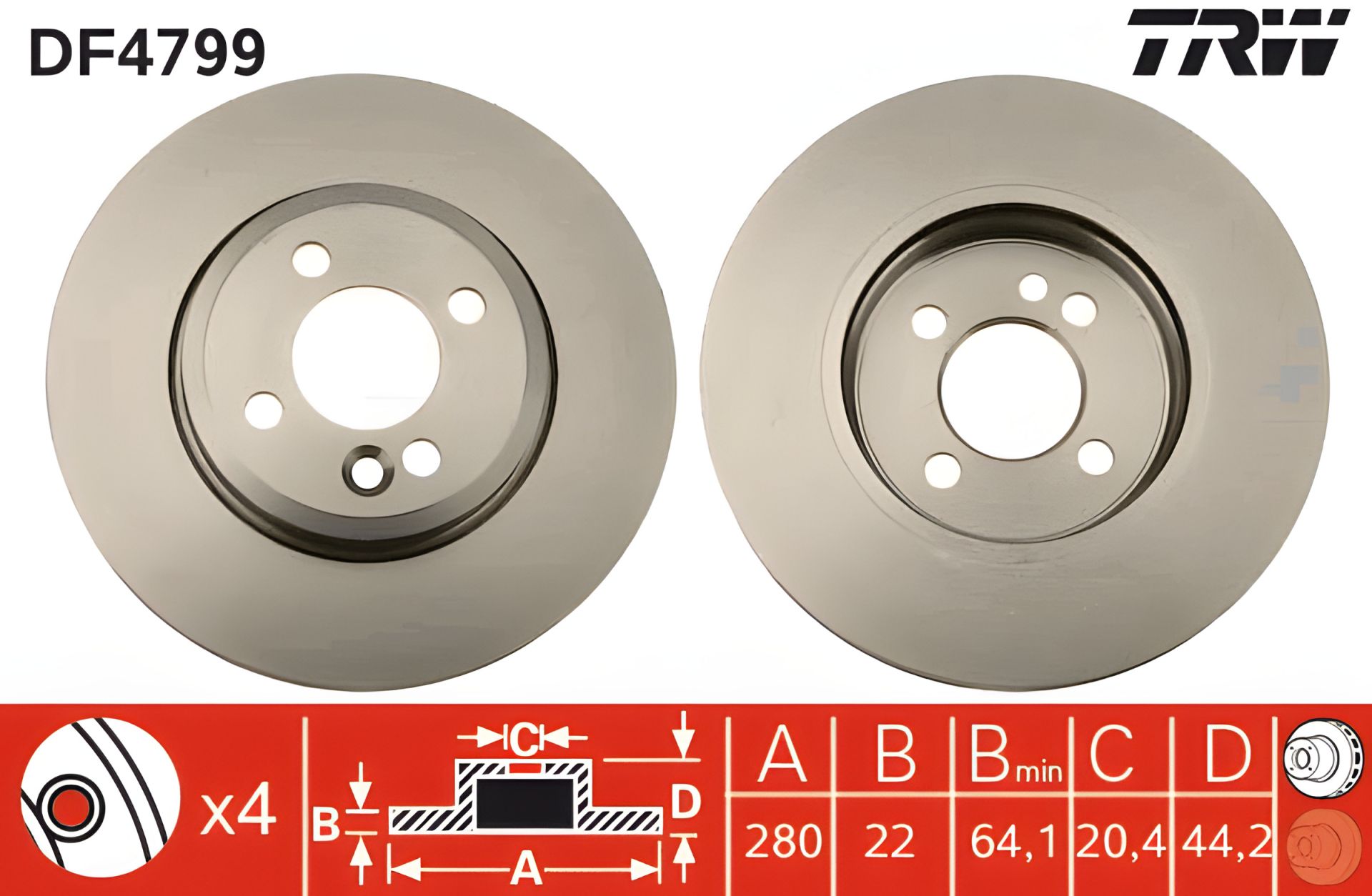 Наружный диаметр [мм] : 280 Тип тормозного диска : вентилируемый Высота [мм] : 44,2 проверочное значение : E1 90R 02 C0176/0003 Толщина тормозного диска (мм) : 22 Размер резьбы : 16,2 Минимальная толщина [мм] : 20,40 Цвет : черный Количество отверстий : 4 Поверхность : лакированный Ø фаски [мм] : 100 Диаметр центрирования [мм] : 64,15 MINI 34116774985 34116858651 6774985 6858651 BMW 34116774985 34116858651 6774985 6858651 MINI MINI CLUBVAN (R55) Cooper D | универсал | Дизель N47 C20 A | 82 kw | 112 hp | 12.2012-06.2014 MINI MINI CLUBVAN (R55) One | универсал | бензин N16 B16 A | 72 kw | 98 hp | 12.2012-06.2014 MINI MINI Roadster (R59) Cooper SD | кабриолет | Дизель N47 C20 A | 105 kw | 143 hp | 11.2011-04.2015 MINI MINI Roadster (R59) Cooper SD | кабриолет | Дизель N47 C20 A | 100 kw | 136 hp | 11.2011-04.2015 MINI MINI купе (R58) Cooper | купе | бензин N16 B16 A | 90 kw | 122 hp | 12.2010-04.2015 MINI MINI купе (R58) Cooper | купе | бензин N16 B16 A | 85 kw | 115 hp | 12.2010-04.2015 MINI MINI Кабриолет (R