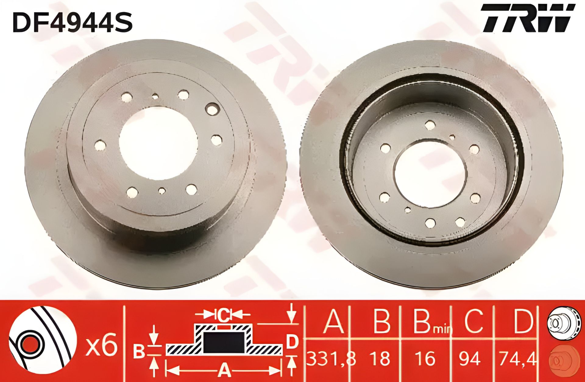 Тормозной диск для MITSIBISHI Pajero R 06 от TRW (DF4944S)