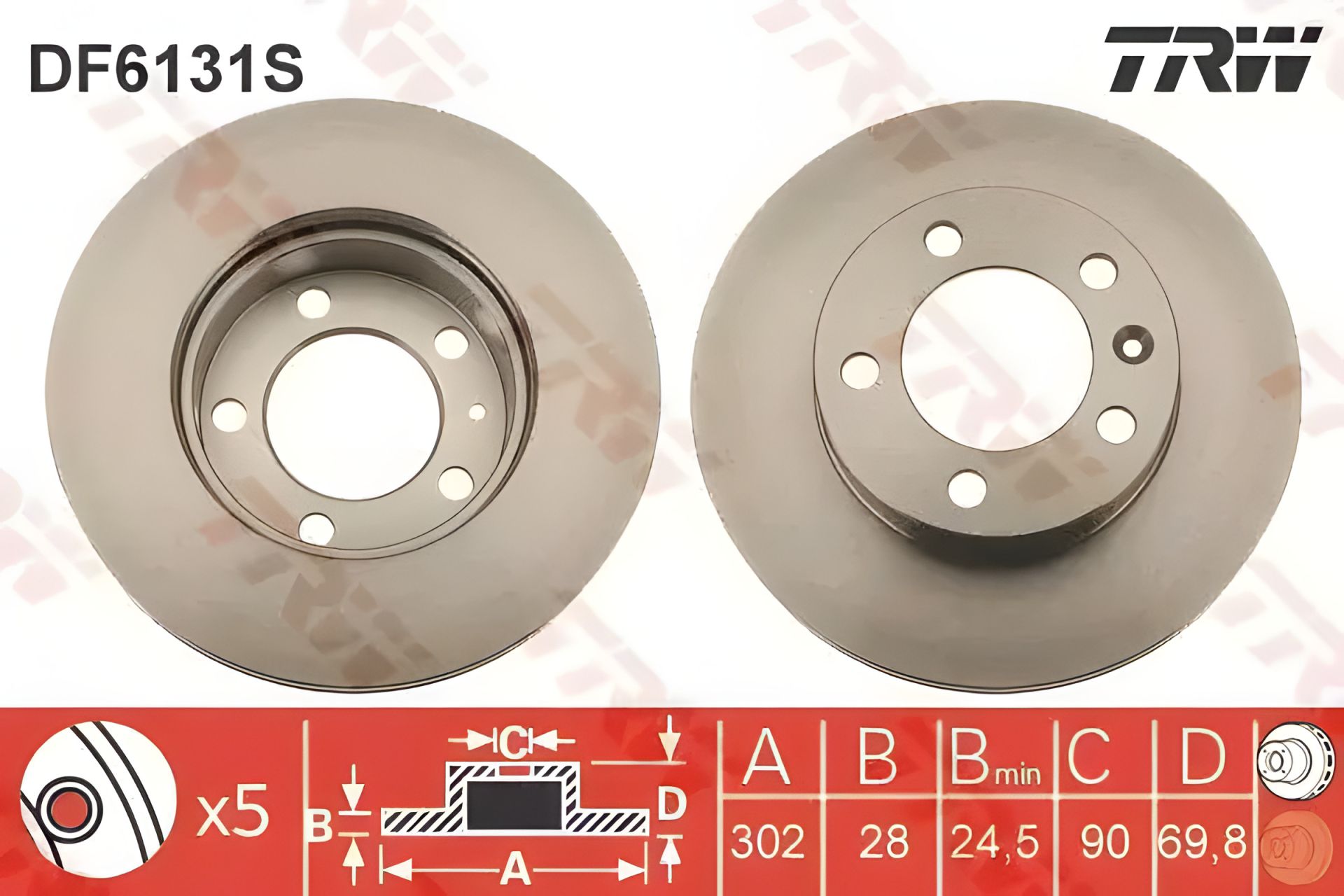 Тормозной диск для NISSAN/OPEL/RENAULT NV400/Movano B/Master, 302мм, TRW (DF6131S)
