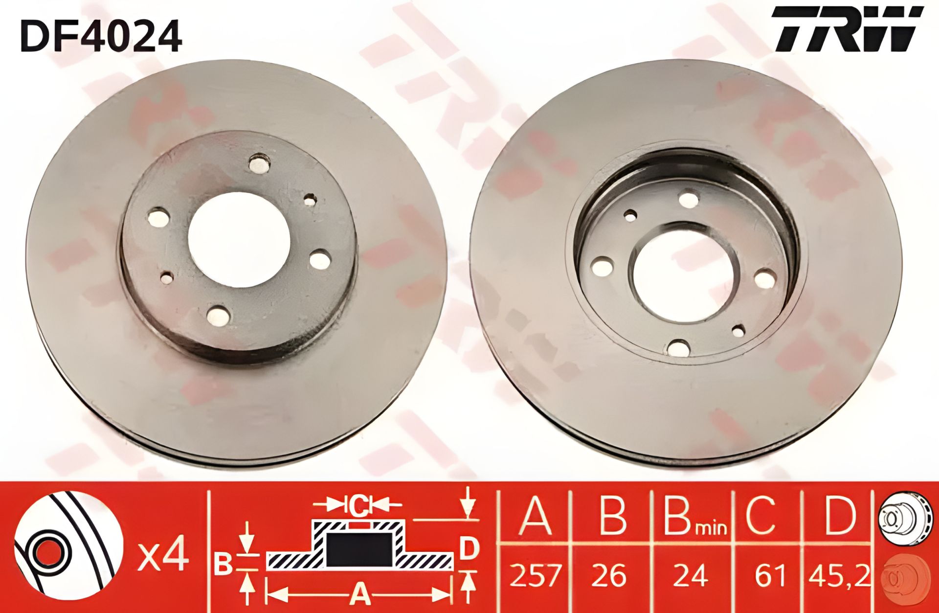 Тормозной диск для NISSAN SUNNY, TRW (DF4024)