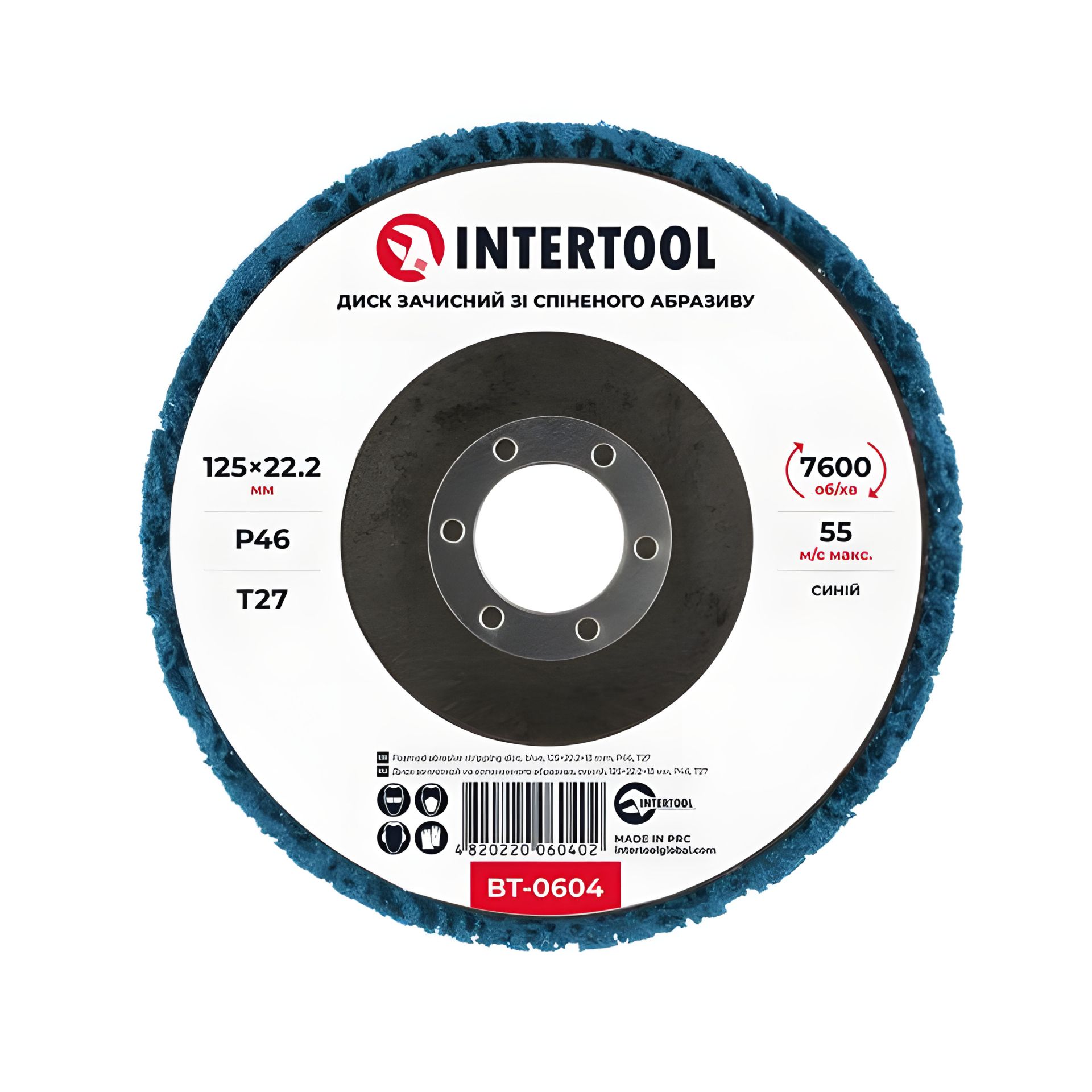 Вспенённый абразивный зачистной диск, голубой, 125×22,2×13 мм, P46, T27, 7600 об/мин INTERTOOL BT-0604