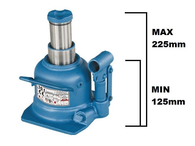 Домкрат бутылочный профессиональный низкопрофильный двухштоковый на 10т Torin TH810002 с рабочим диапазоном 125-225 мм.
