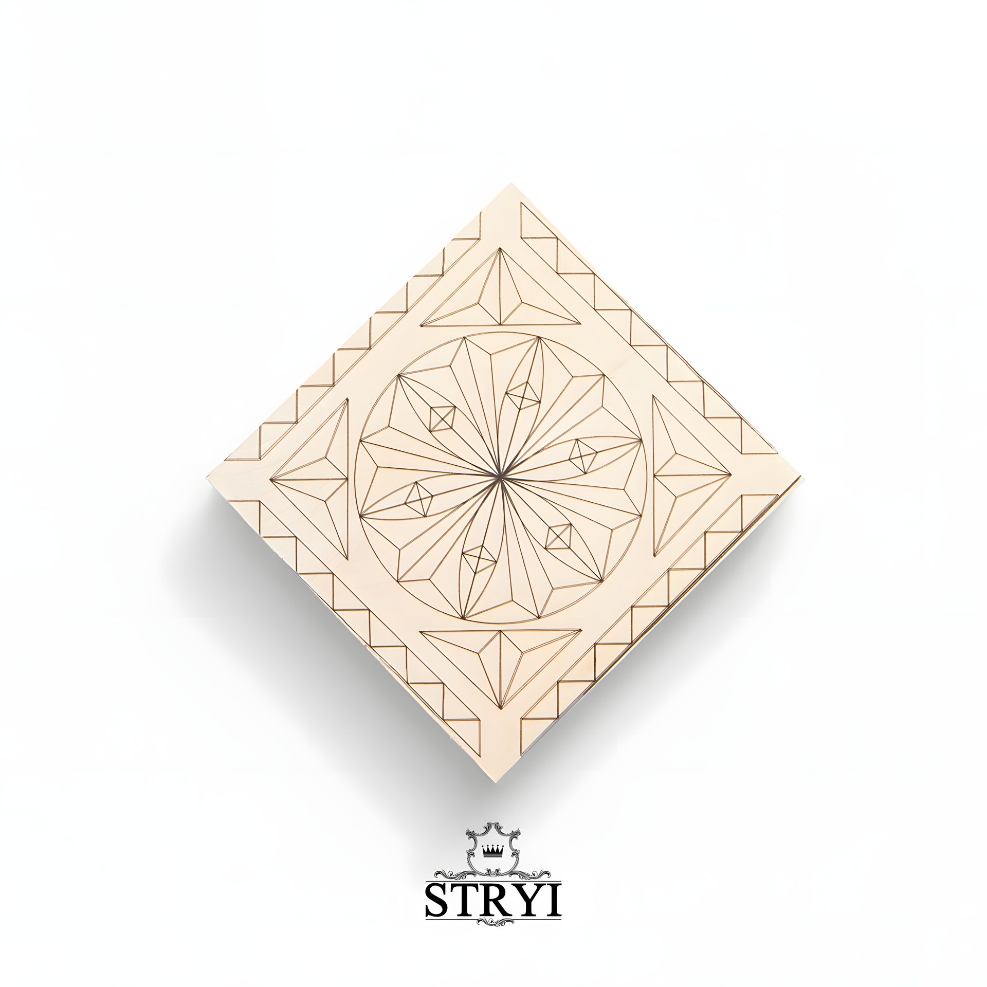 Дощечка тренировочная STRYI для резьбы с чертежом, липа, 100*100*20мм, арт.711010
