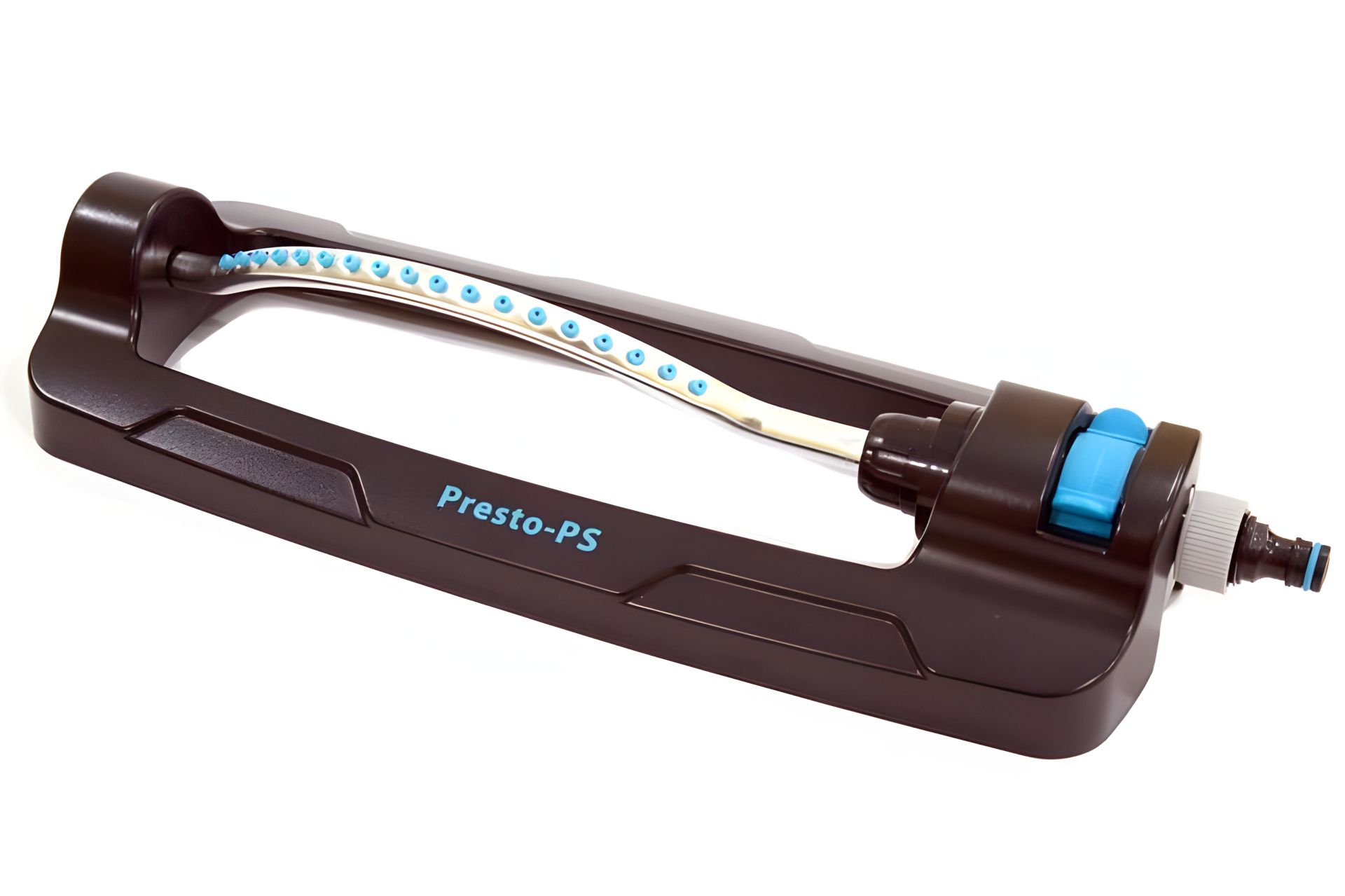 Дощувач осцилюючий Presto-PS Гарант-М (7820) використовується для зрошення середніх і невеликих газонів, підійде так само і для поливу городу. Ці дощовики розбризкують воду через 18 форсунок тонкими струменями, імітуючи природний дрібний дощ, і обробляють прямокутний сектор розміром 15,5 х 16,5 метрів площею до 255 м2. У конструкції дощовиків використовується довговічний автоматичний запатентований автоматичний турбомотор із застосуванням унікальних композитних матеріалів, який працює від води, що проходить через нього. Ширина поливу легко регулюється за допомогою повзунків на корпусі дощовиків. Для продовження терміну служби зрошувача рекомендується використання в системі подачі води фільтра грубого очищення. Робочий тиск 2-4 атмосфери. Витрата води за тиску 2 атмосфери до 0,8 м?/год. Сопла виготовлені з гуми і легко чистяться комплектною голкою для форсунок. Підключається зрошувач до садових шлангів діаметром 1/2, 5/8 і 3/4 дюйма за допомогою стандартних конекторів.