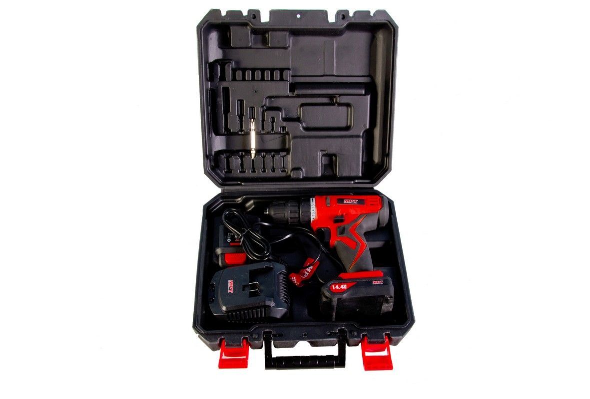 Дрель-шуруповерт аккумуляторная 14.4V 1.3 А·ч 2 скорости 10 мм 2 АКБ кейс MASTERTOOL MCDT1423.A2