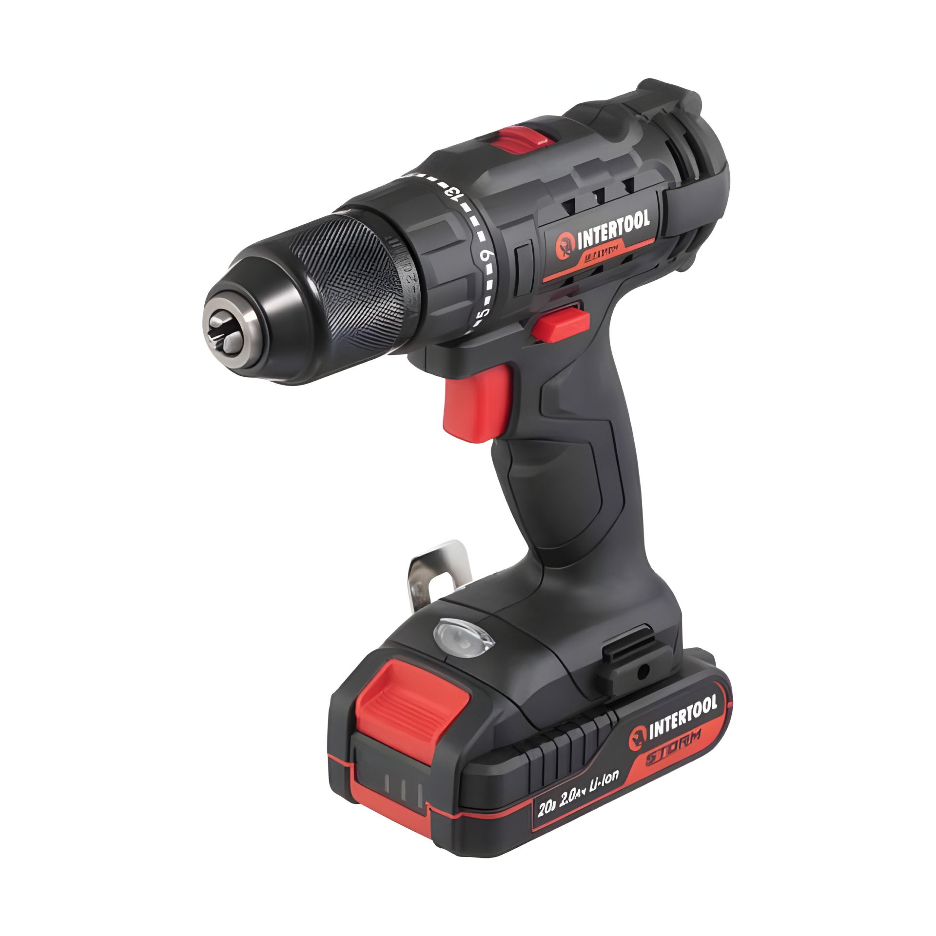 Шуруповерт-дрель аккумуляторная 20 В, 35 Nm, 0-450/0-1500 об/мин, Li-ion, 2-13 мм, 2,0 Ач, зарядное устройство 2 A, кейс INTERTOOL WT-0350