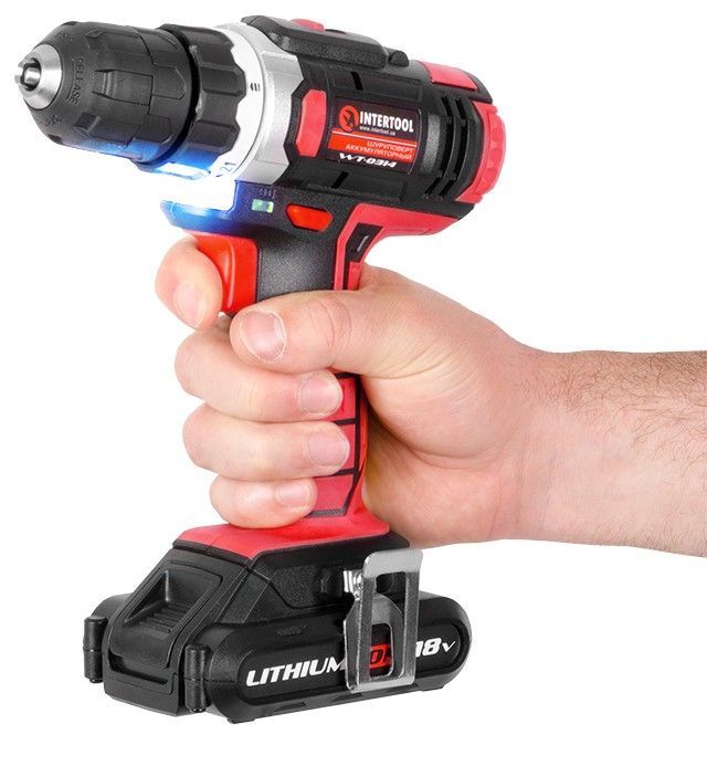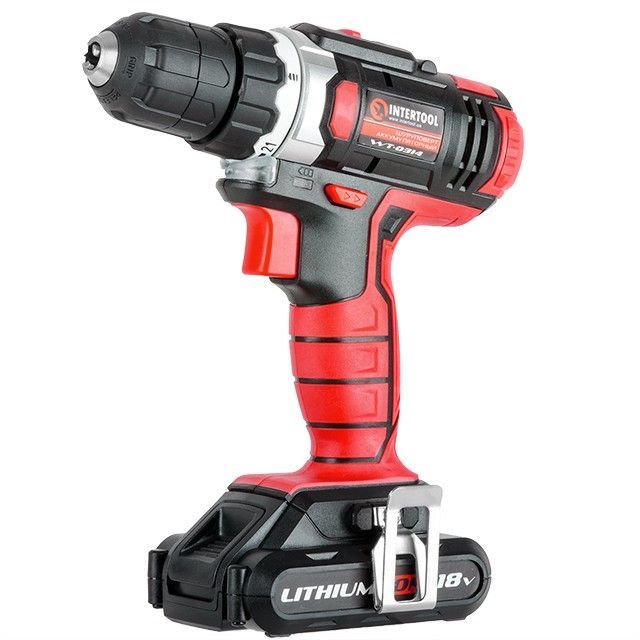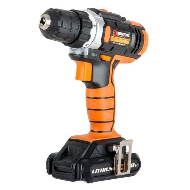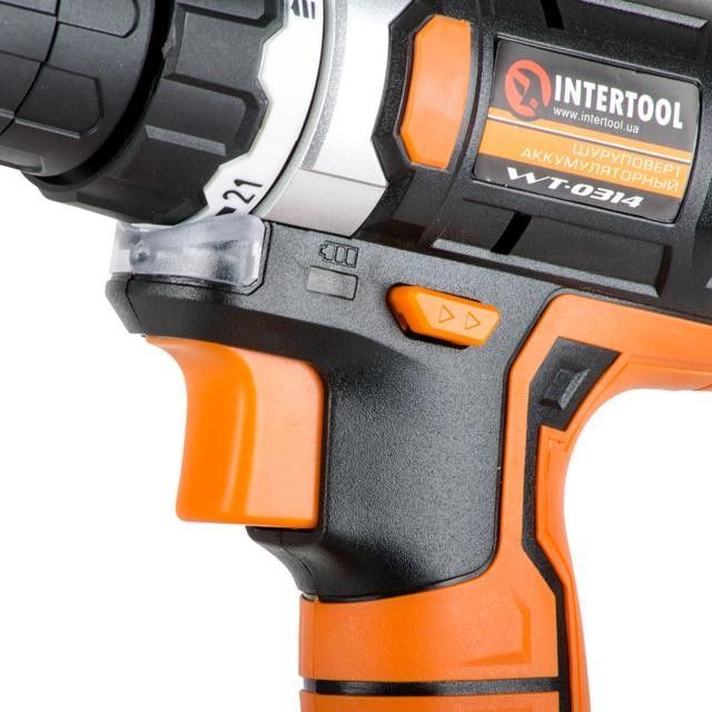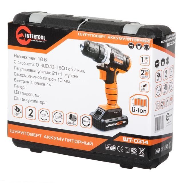 Дрель-шуруповерт аккумуляторная, Li-Ion, 18 В, 25 Nm, 0-400/0-1500 об/мин, 2×2,0 Ач INTERTOOL WT-0314