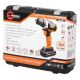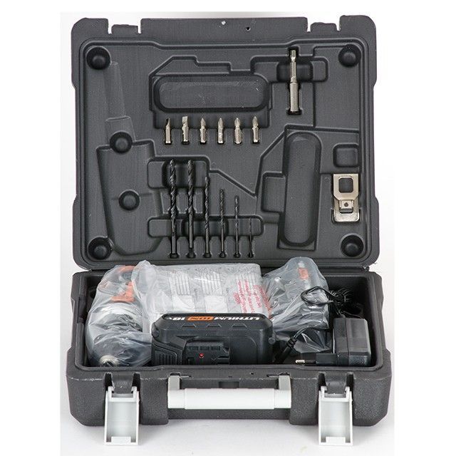 Индикатор заряда батареи всегда сообщает когда нужно сменить разряженный аккумулятор, а комплектное зарядное устройство полностью заряжает Li-Ion аккумулятор за 80 минут. Шуруповерт поставляется в прочном кейсе с надежными защелками для удобного хранения и транспортировки инструмента.