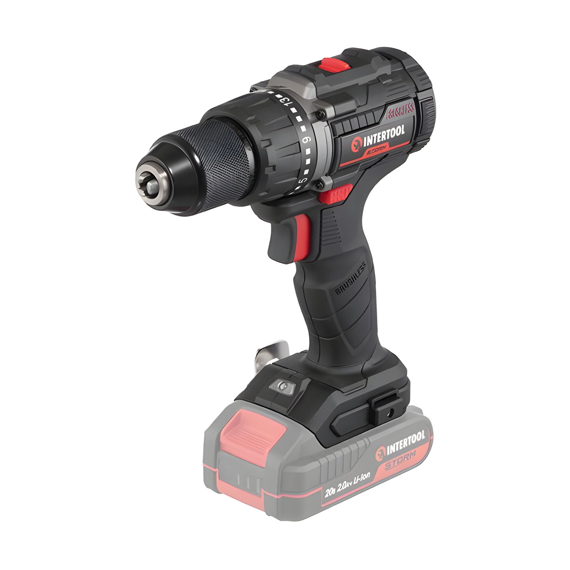Бесщеточная дрель-шуруповерт аккумуляторная 20 В, 60 Nm, 0-500/0-2000 об/мин, 2-13 мм, без ЗУ и АКБ INTERTOOL WT-9360