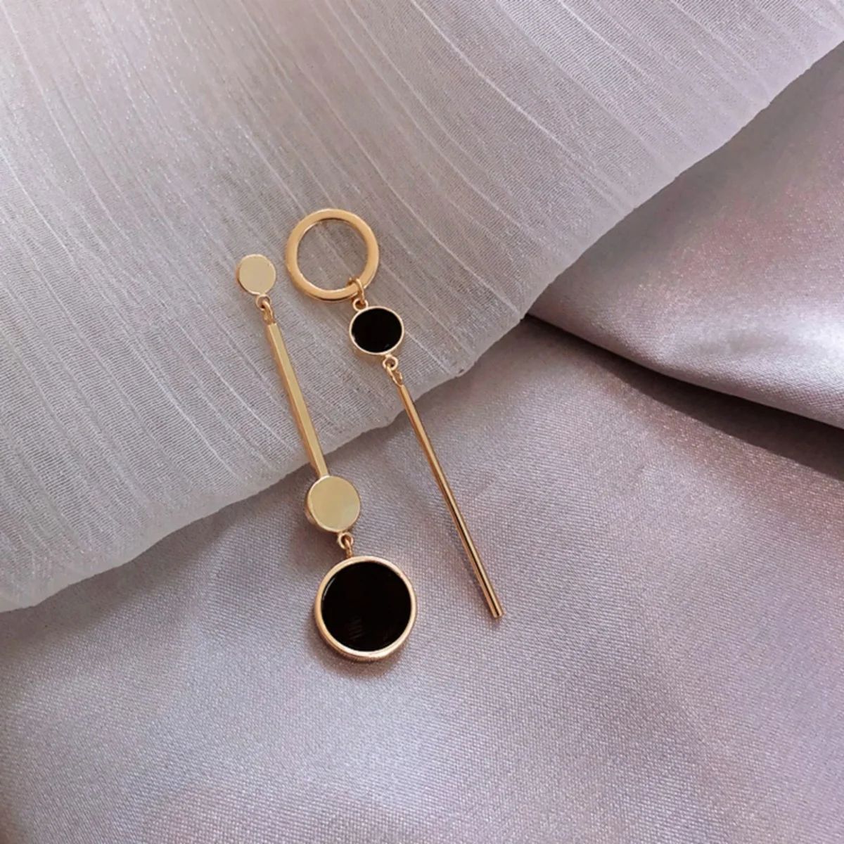 Серьги сережки кисти и круг черные кисточки длинные висячие