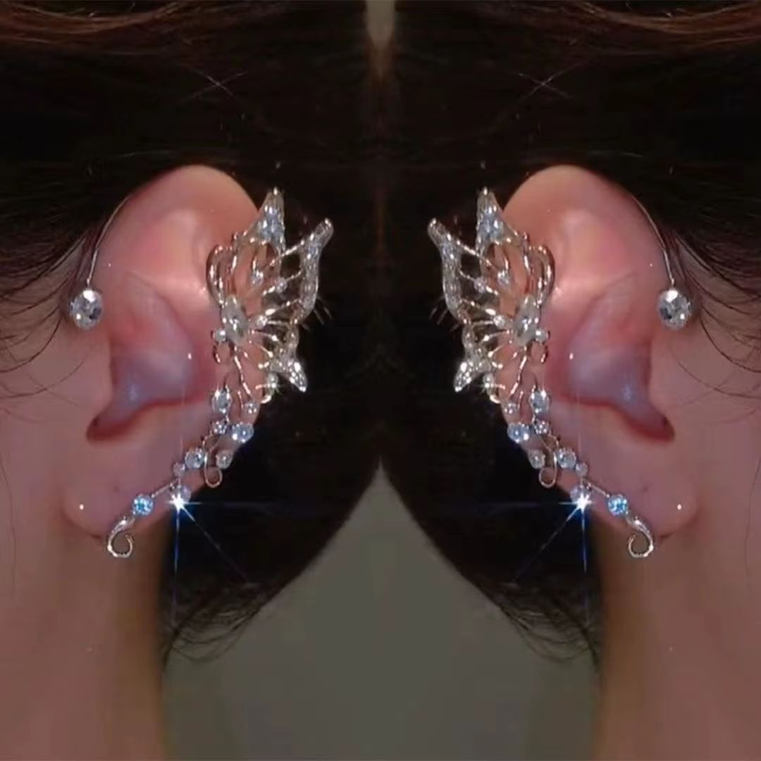 Каф клипс на ухо блестящая хрустальная эльф-бабочка без прокола клипса серьга бабочка с камнями