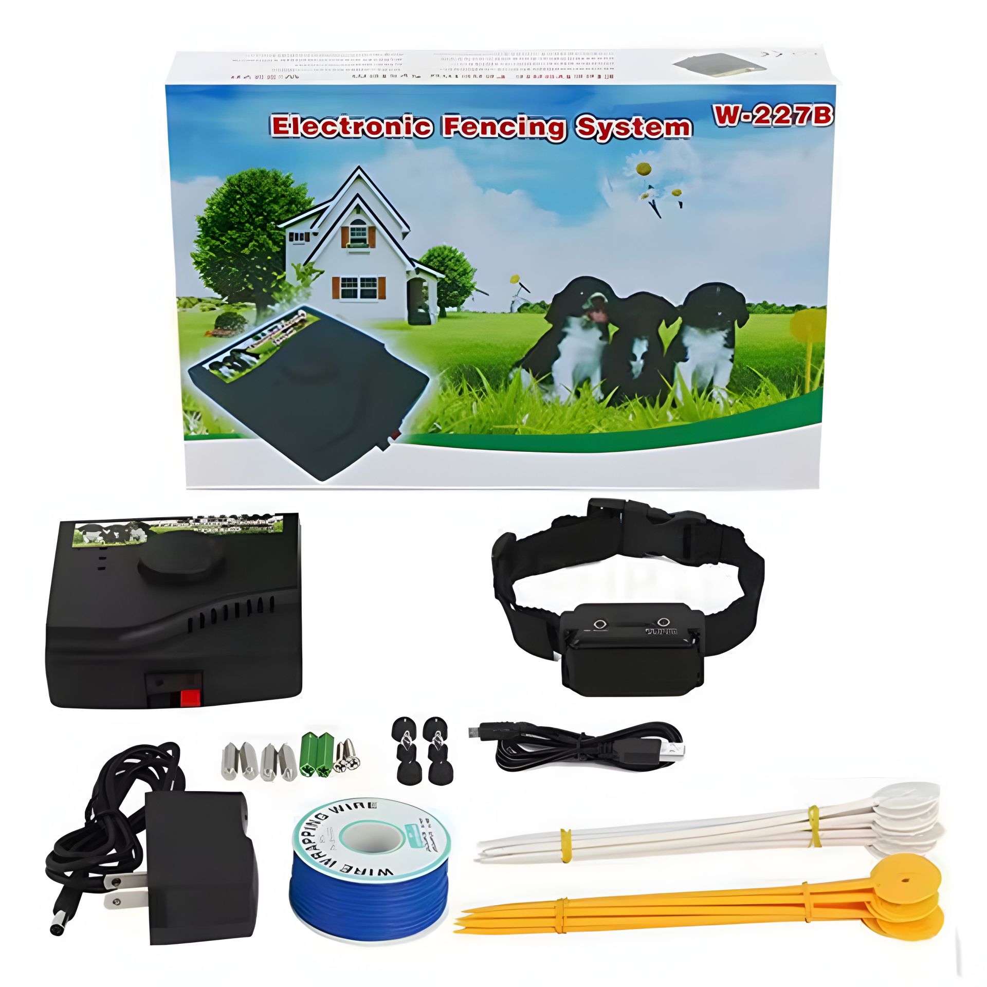 - Проводная электронная изгородь для собак с беспроводным аккумуляторным ошейником.