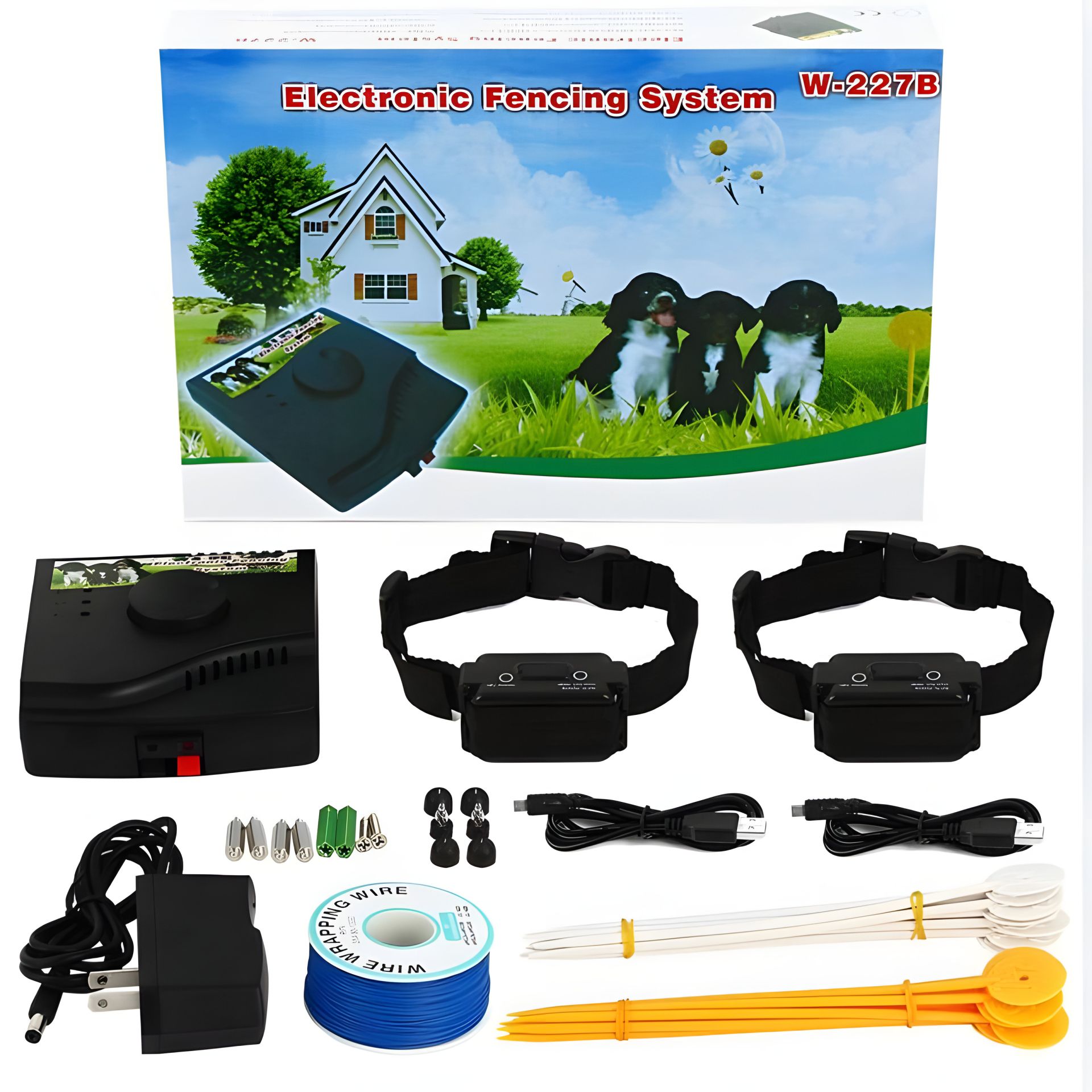 - Проводная электронная изгородь для собак с беспроводным аккумуляторным ошейником.