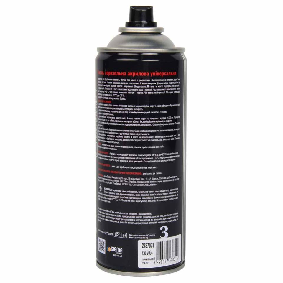 Эмаль аэрозольная акриловая 400мл RAL 2004 оранжевый глянец SIGMA (2737031)