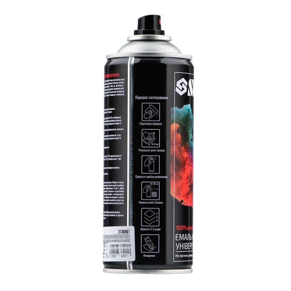 100% акриловая, быстросохнущая, аэрозольная эмаль с прекрасной адгезией к большинству поверхностей, таких как металл, бетон, дерево, стекло, пластик, гипсокартон и других материалов.