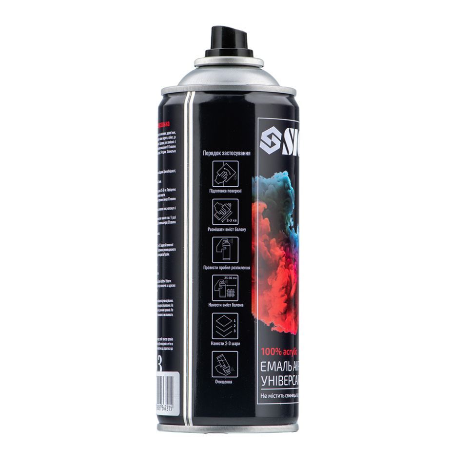 100% акриловая, быстросохнущая, аэрозольная эмаль с прекрасной адгезией к большинству поверхностей, таких как металл, бетон, дерево, стекло, пластик, гипсокартон и других материалов.