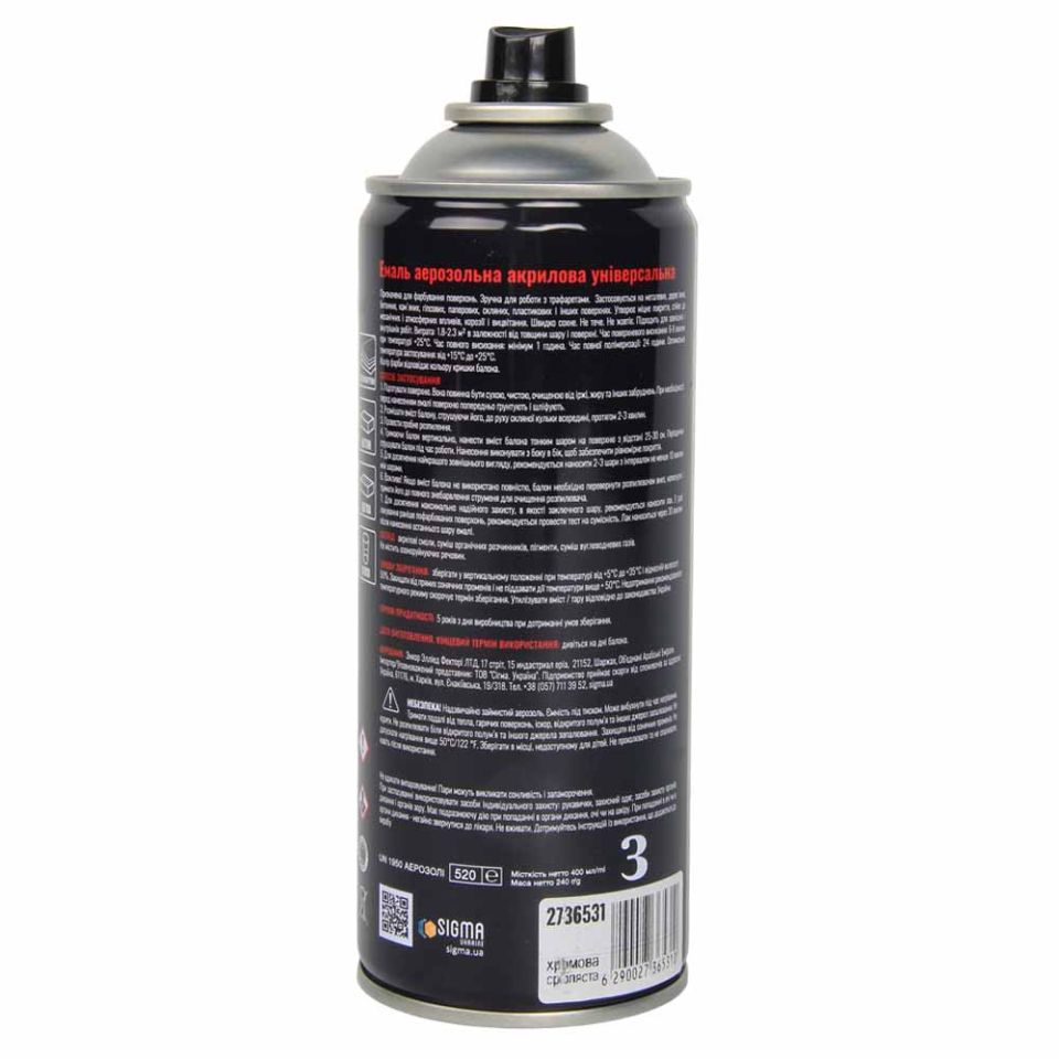 Эмаль аэрозольная акриловая хром 400мл серебряный SIGMA (2736531)