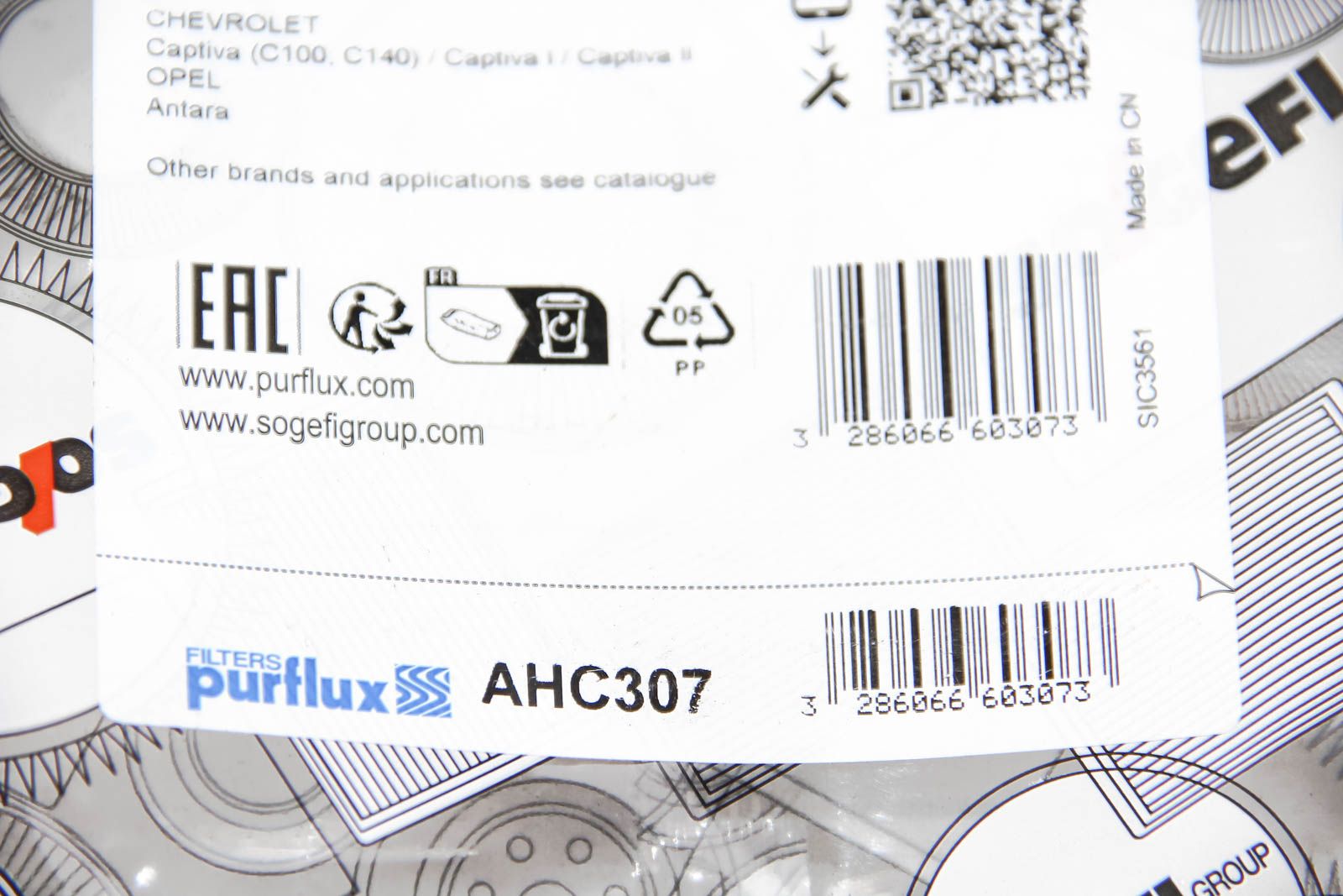 Салонный фильтр Chevrolet Captiva 06-/Opel Antara 06-, PURFLUX (AHC307)