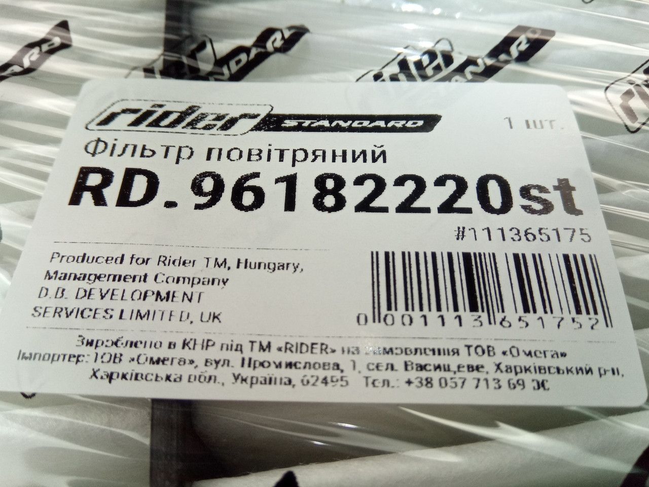 Фильтр воздушный Lanos, RIDER (96182220)