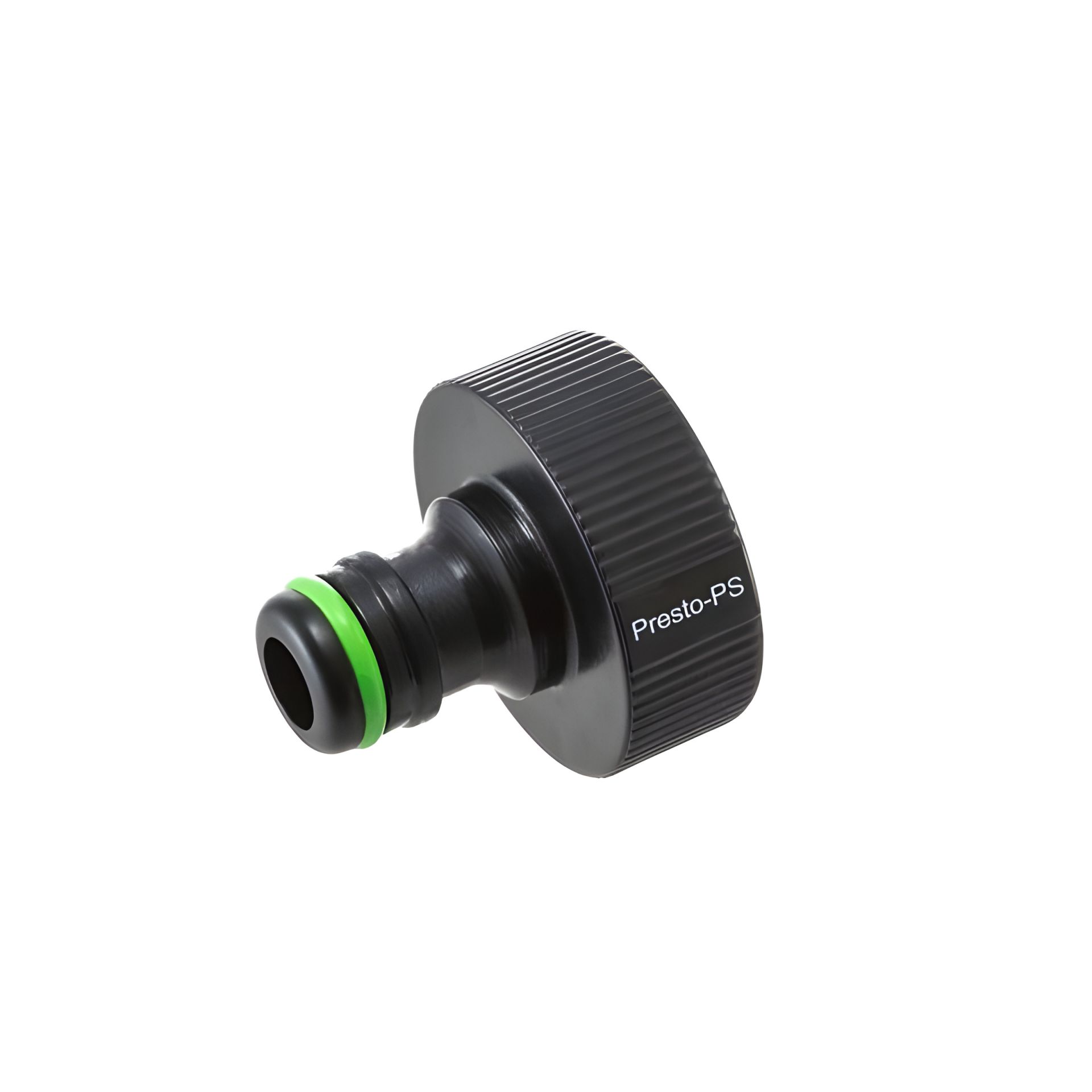 Адаптер під конектор Presto-PS (4019) застосовують у комбінації зі швидкознімними конекторами, кранами або трійниками із зовнішнім різьбленням 1 дюйм для під'єднання садових шлангів різних діаметрів до системи водопостачання. Робочий тиск до 4 атмосфер. Виготовляється адаптер з якісного пластику, стійкого до механічних навантажень, дії розчинів добрив і ультрафіолетового випромінювання.