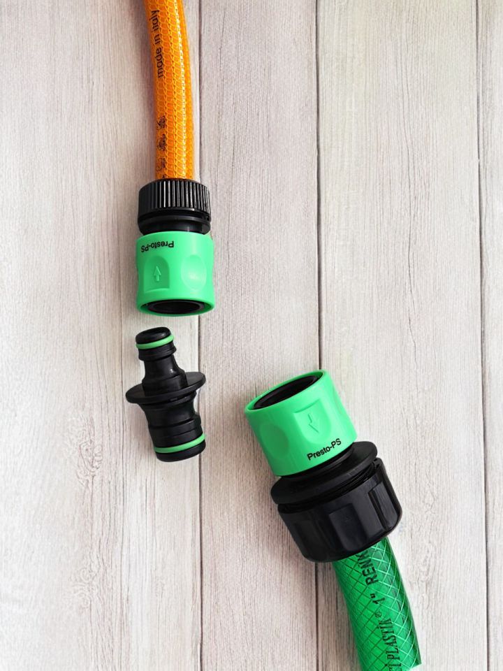 Перехідне з'єднання Presto-PS (2509) застосовують у комбінації зі стандартними конекторами та конекторами серії Jet для переходу з садових шлангів більшого діаметру на менший і під'єднання зрошувальних пістолетів або дощовиків зі стандартним діаметром кріплення. Робочий тиск до 4 атмосфер. Виготовляється адаптер з якісного пластику стійкого до механічних навантажень, дії розчинів добрив та ультрафіолетового випромінювання.