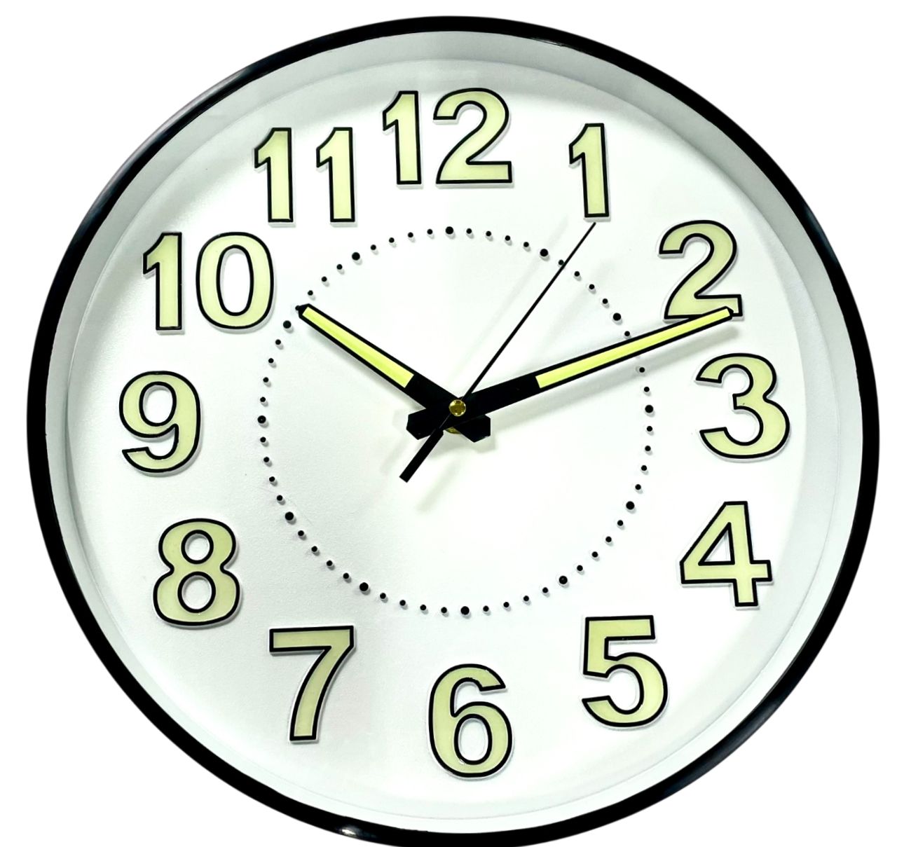 Настенные Бесшумные Часы Фосфорные Светящиеся с Объемными Цифрами (30 см) Timelike™