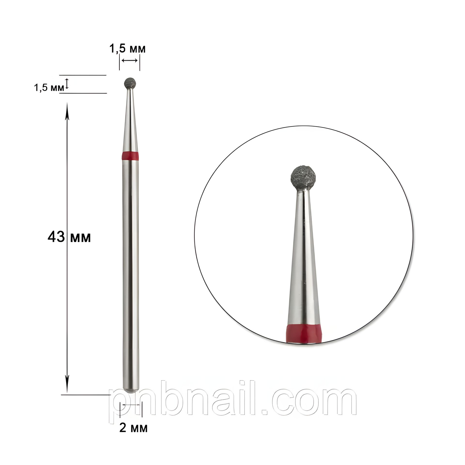 Алмазная фреза 001 красная (Шар) DLX / размеры-016, 025, 040, 050