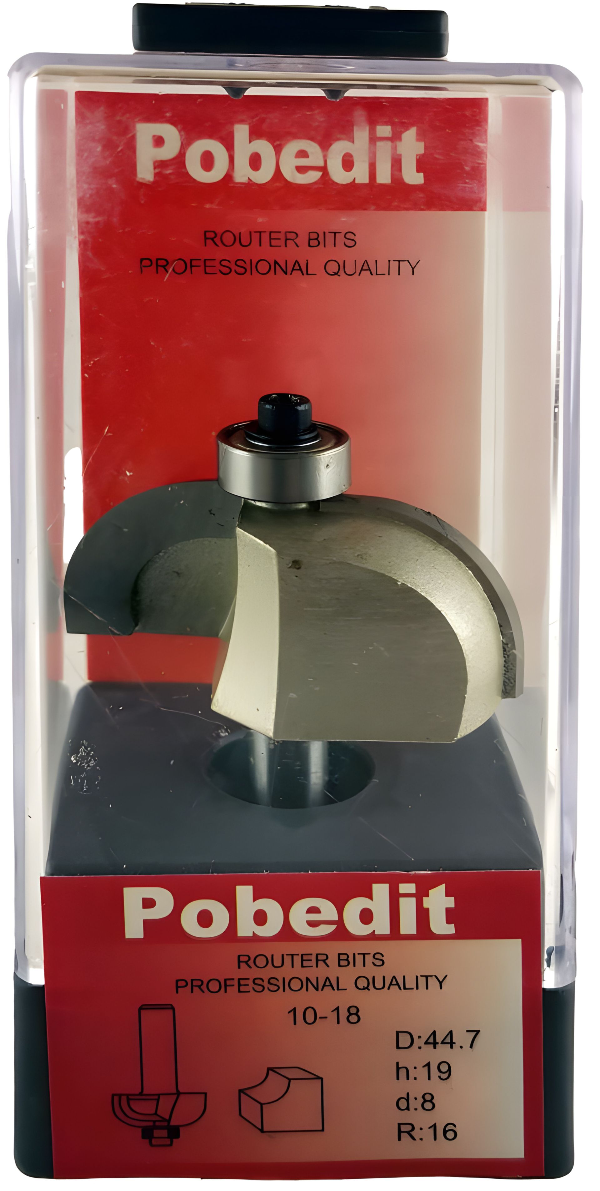 Обратная радиусная кромочная фреза с подшипником D-44.7 мм, R-16 мм, d-8 мм Pobedit P-1018-08-16