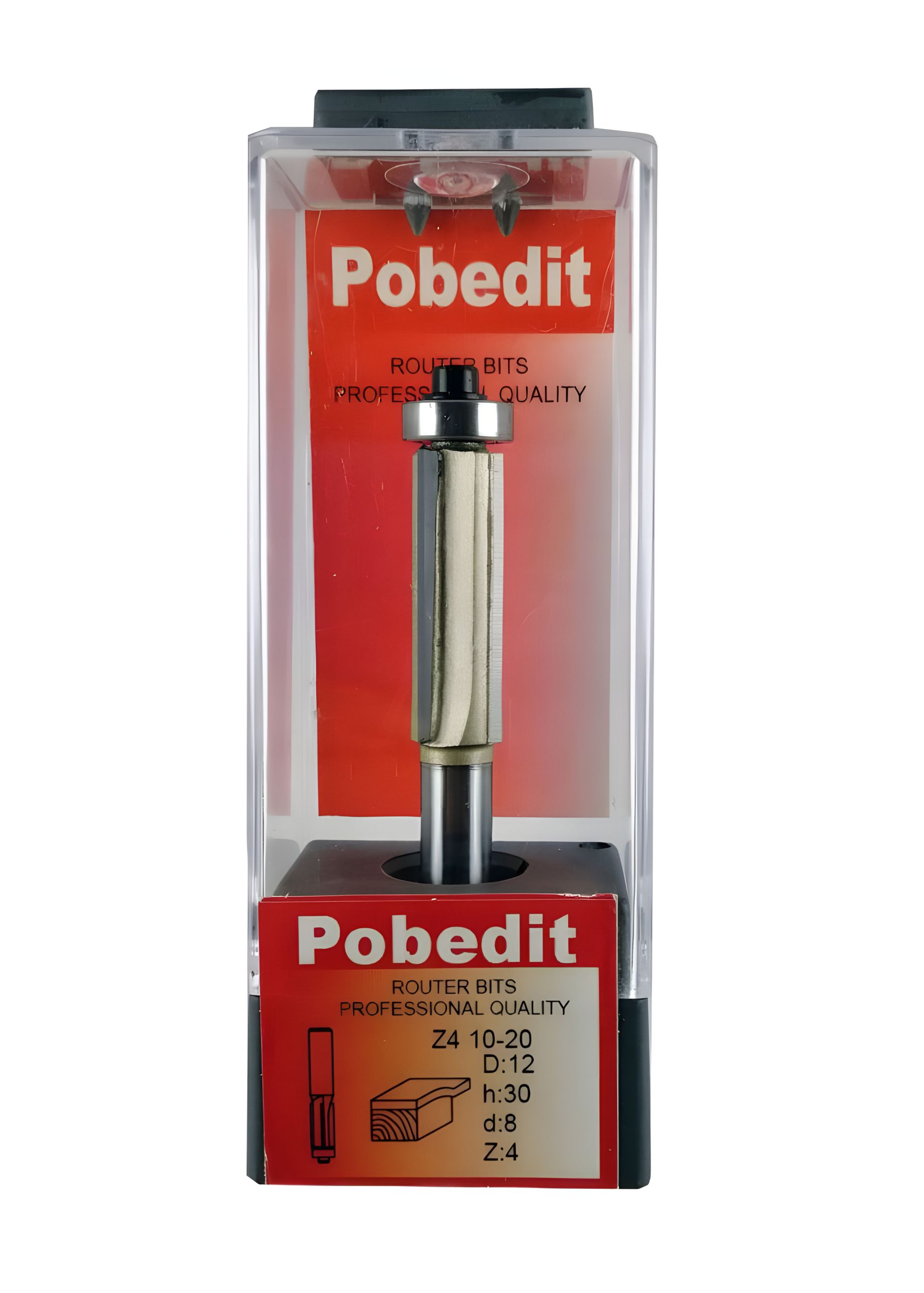 Обкаточная фреза прямая четырехножевая с нижним подшипником D-12 мм, d-8 мм Pobedit P-1020-08z4-1230