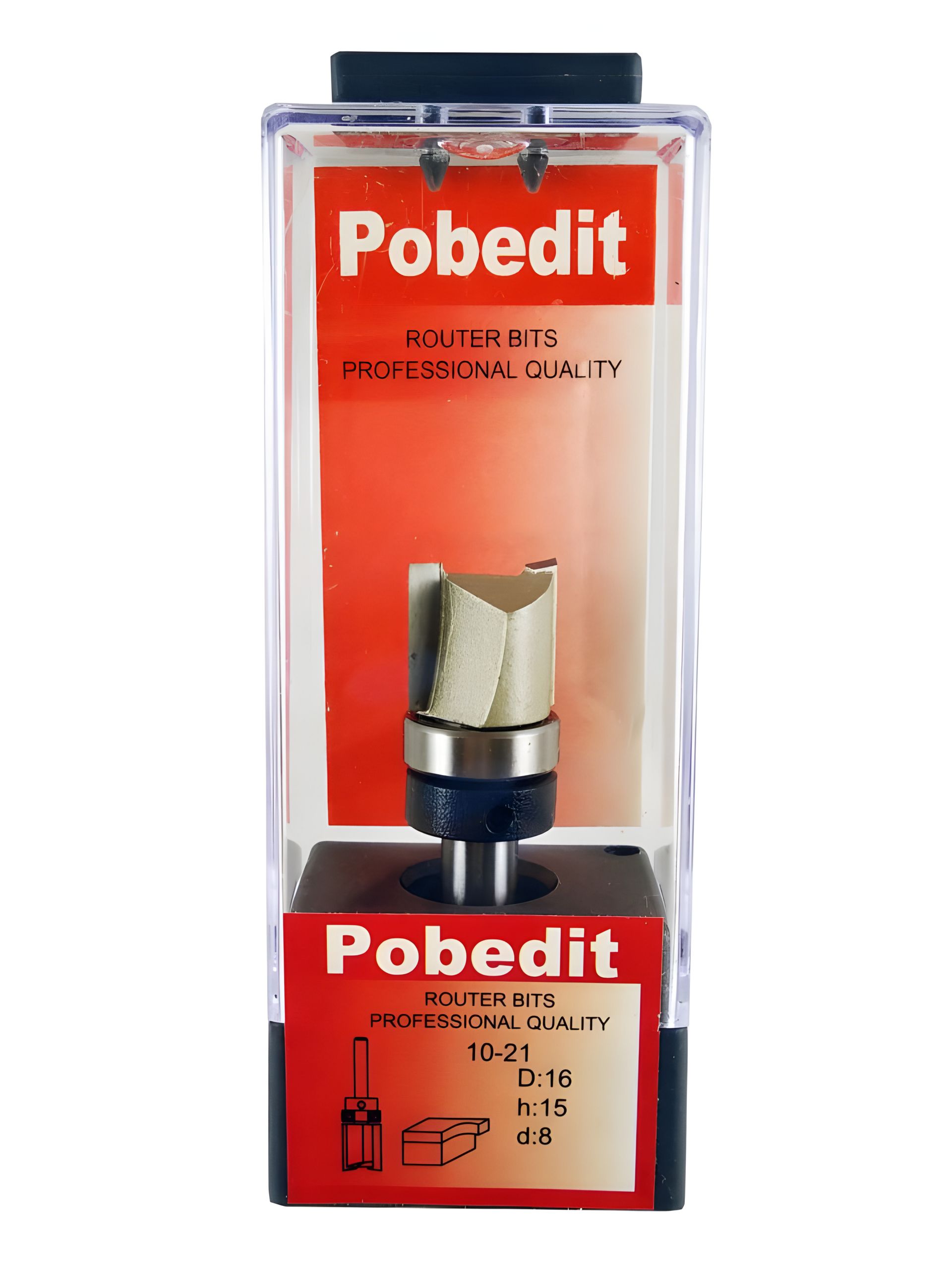 Фреза концевая Pobedit 1021, копировальная, с верхним подшипником, предназначена для обработки прямых торцов и обрезки боковых продольных свесов. Обеспечивает высокую точность при резке ламината и отличные результаты финишной обработки при работе по шаблону.