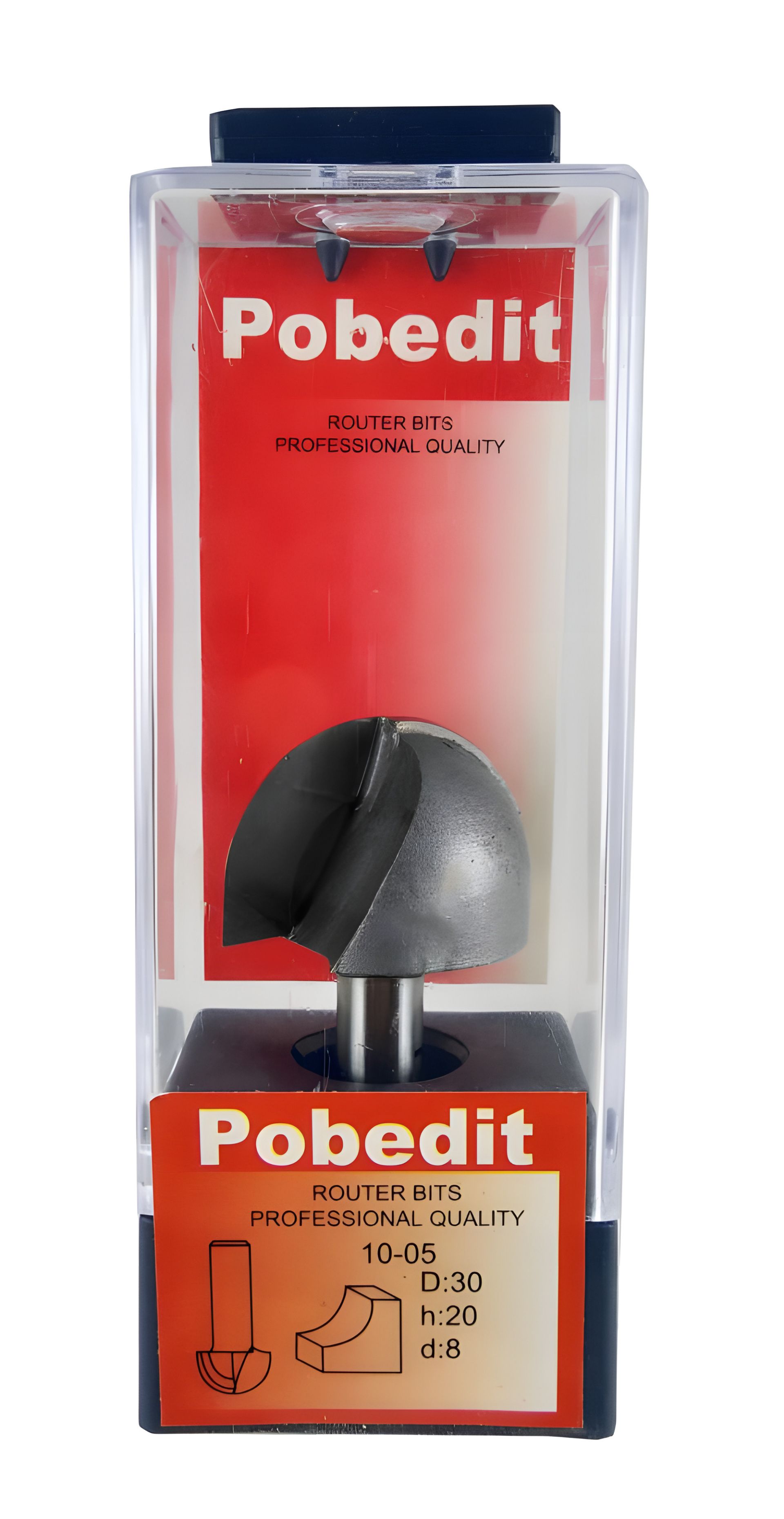 Полукруглая галтельная фреза по дереву D-30 мм, d-8 мм Pobedit P-1005-08-30