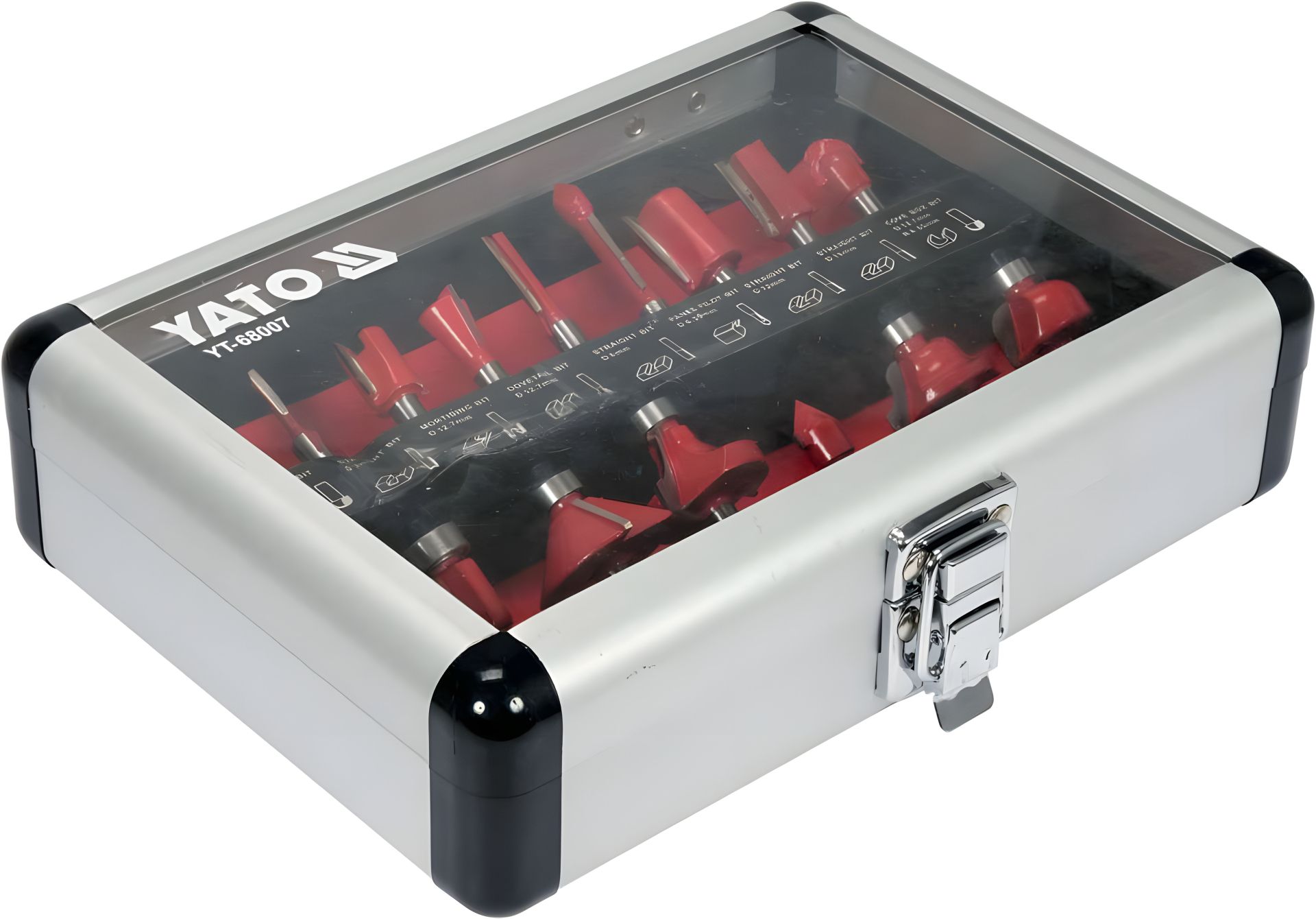 Фрезерные биты по дереву со шпинделем Ø 6 мм, Ø= 3-32 мм, 15 шт Yato YT-68007