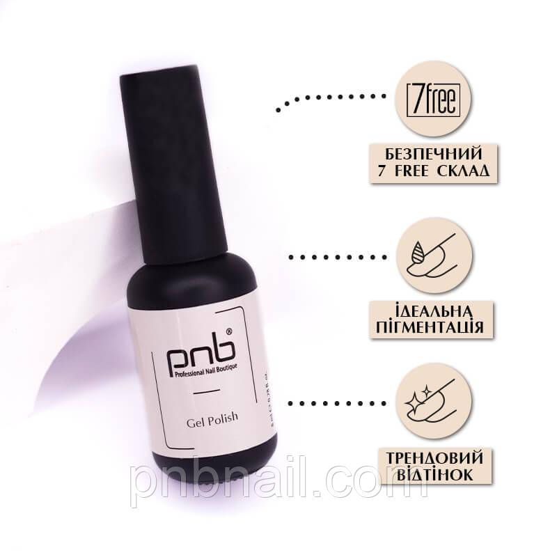 Уникальная формула гель ― лаков PNB позволяет легко создать безупречный маникюр, обладает идеальным глянцевым блеском, ярким цветом, потрясающей стойкостью, без сколов и царапин в течении трех недель.