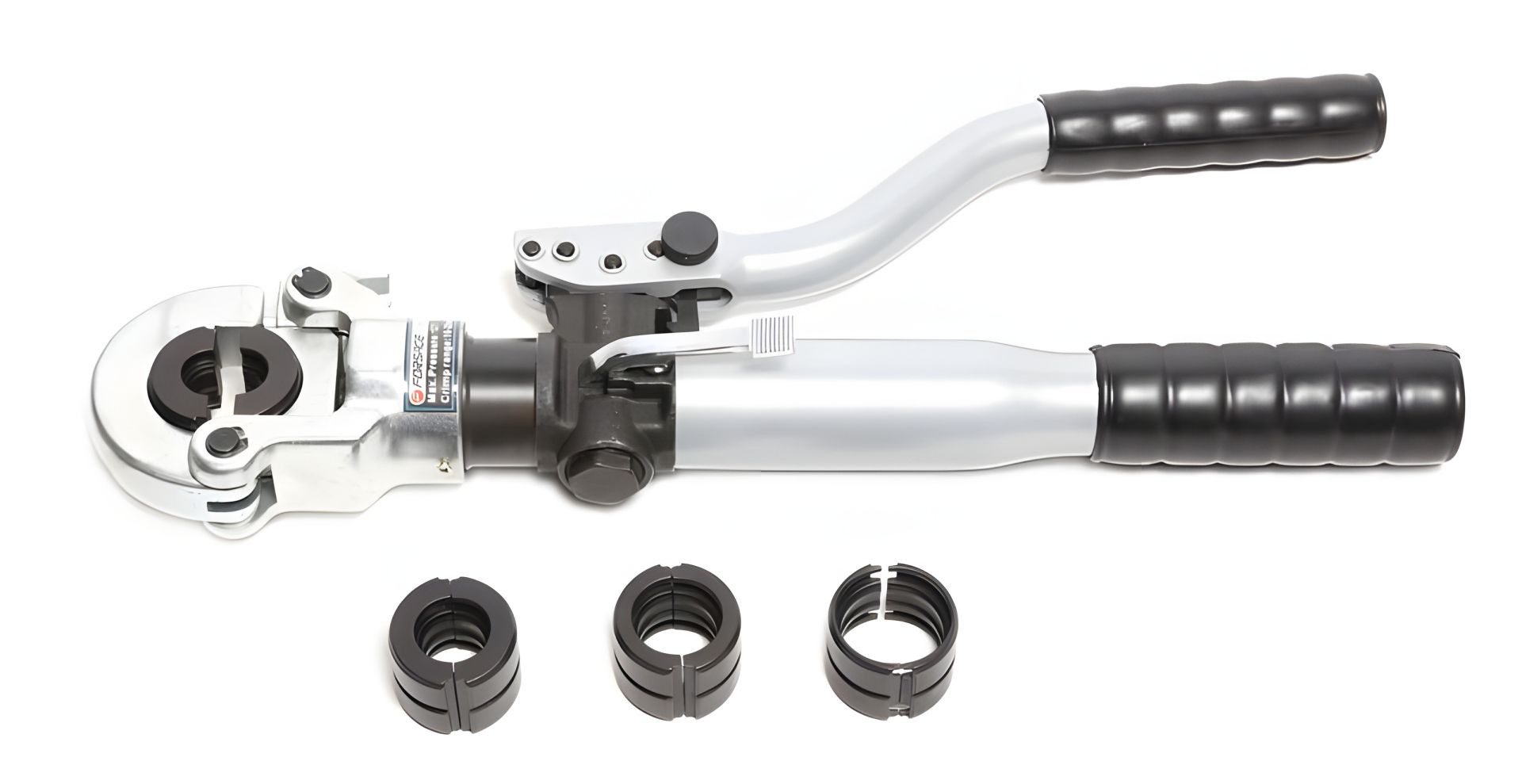 - Этот инструмент для обжима труб поставляется с утолщенным гидравлическим насосом. Отличается хорошей герметичностью и отсутствием утечек масла. Оснащенный предохранительным клапаном, давление автоматически сбрасывается, когда давление достигает ограниченного максимального значения.
