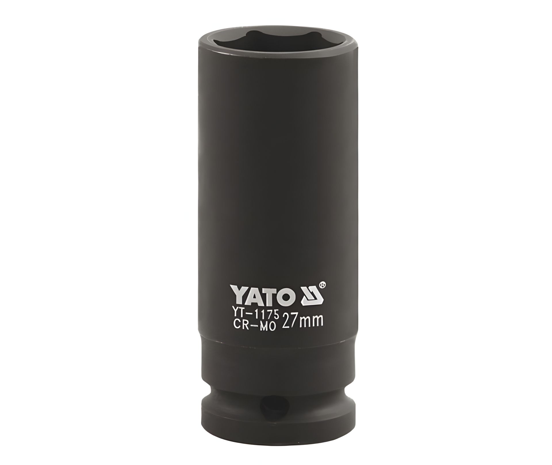 Головка торцевая ударная длинная шестигранная 1" YATO изготовлена из хром-молибденовой стали.