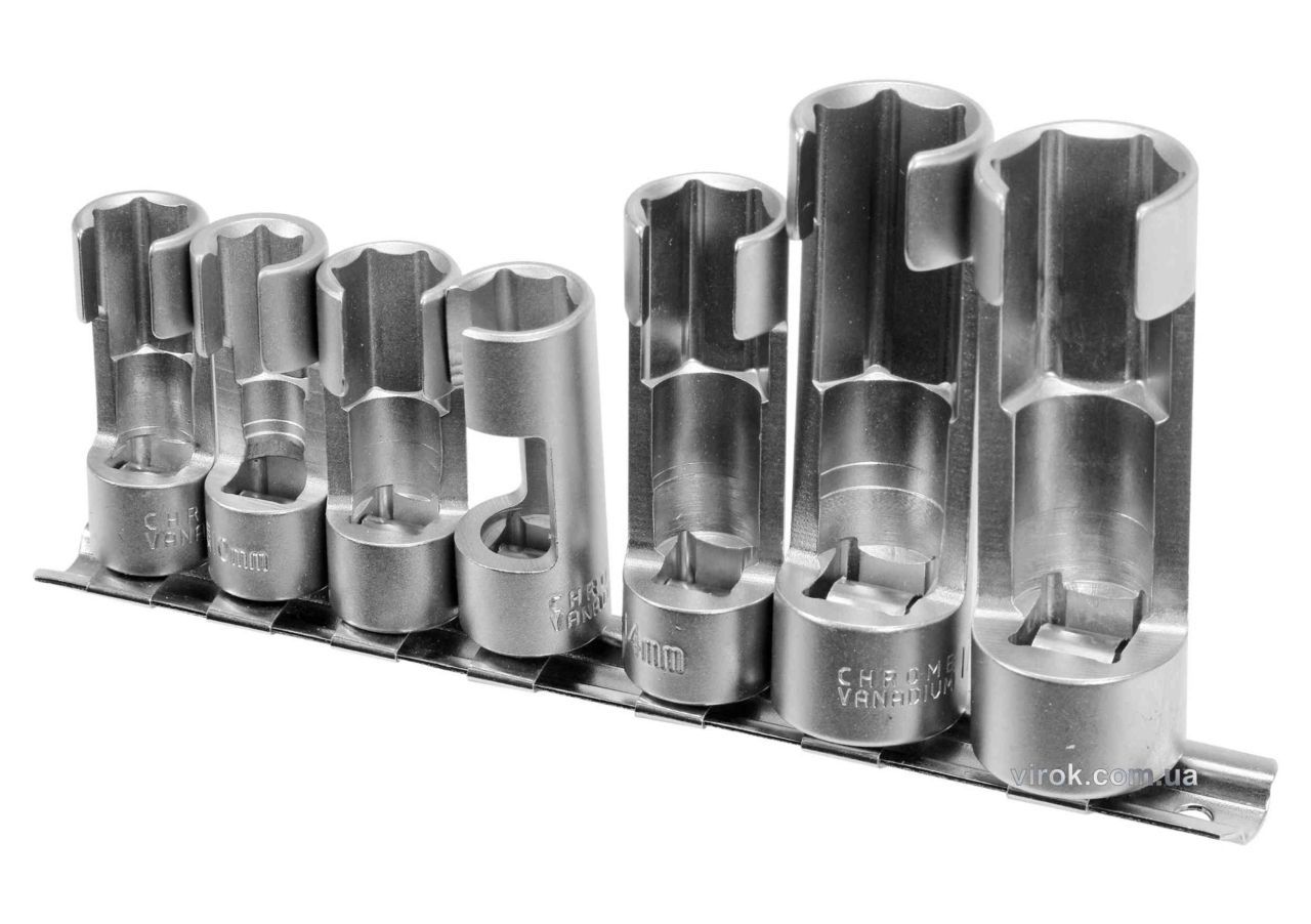 Головки торцевые открыты для лямбда-зондов, датчиков : 3/8" и 1/2", М10-19, CrV, 7 шт. YaTo YT-17508
