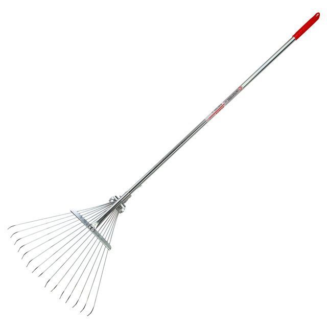 Данная модель граблей изготовлена из надежной высококачественной оцинкованной стали, что придает прутьям дополнительную прочность и устойчивость против коррозии. Веерные грабли поставляются с удобной металлической ручкой. Ширина веера может регулироваться в диапазоне от 300 до 500 мм, и позволяет настроить оптимальную ширину обработки, в зависимости от типа поверхности и загрязнений.