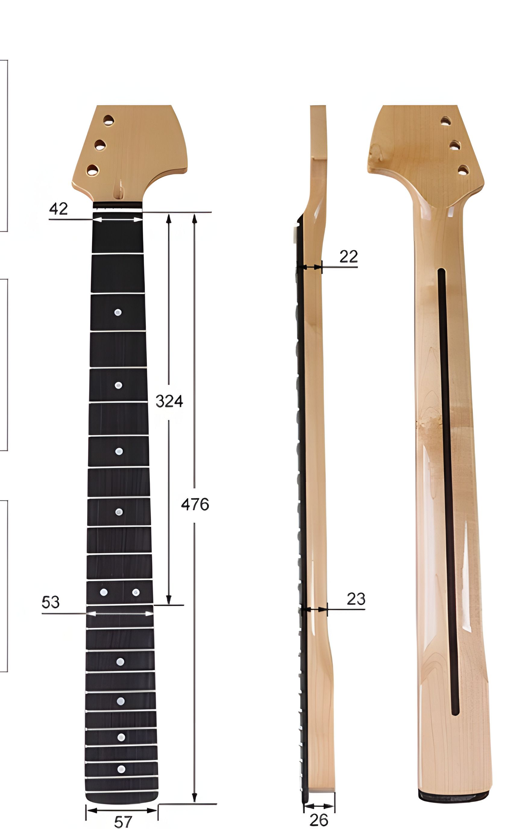 Высота грифа у основания 24 мм. Высота накладки 4-5 мм.