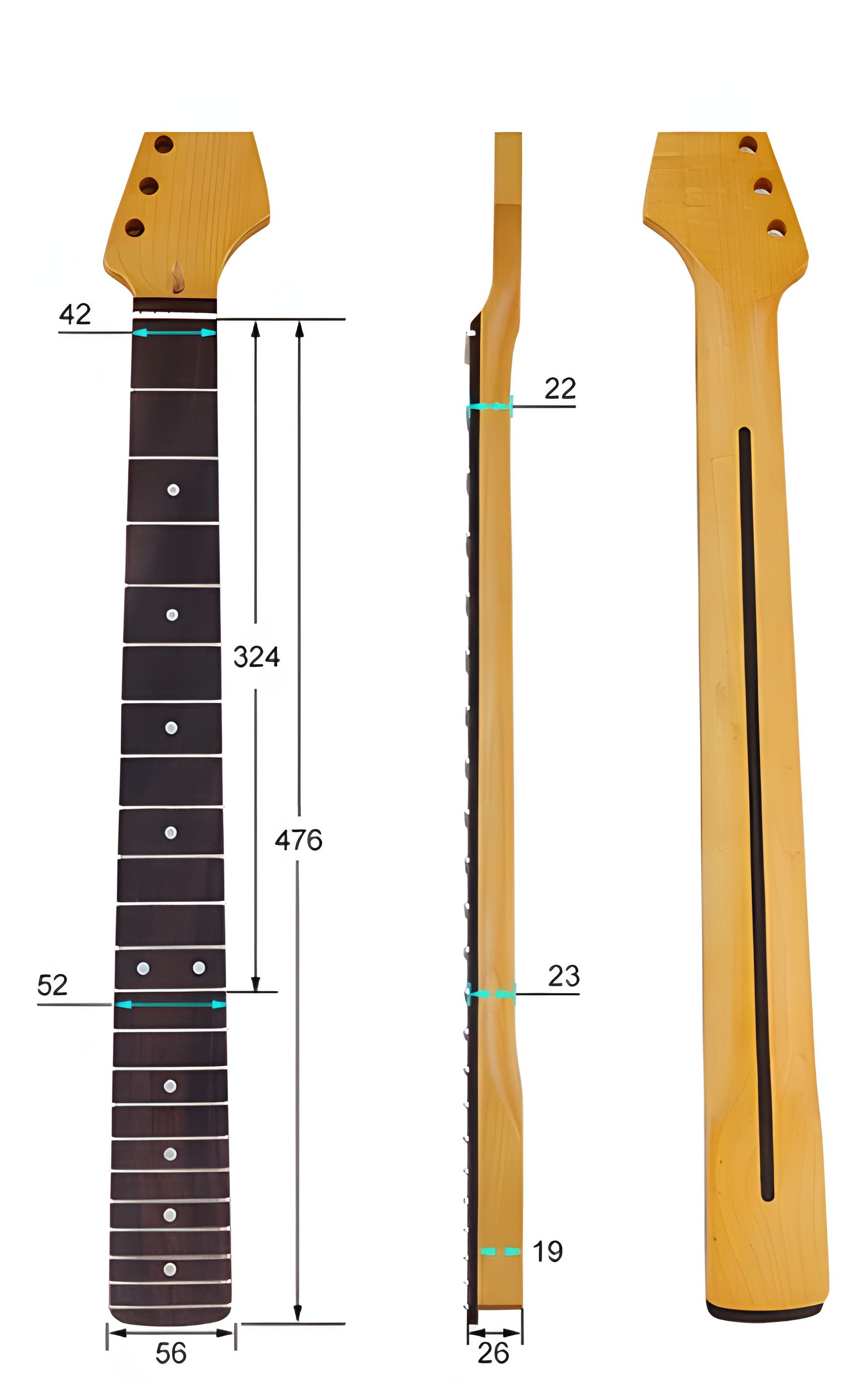 Гриф без покрытия лака. Но, с пропиткой. Палисандровая накладка. Хорошее качество. Лады - нейзильбер. Гриф стандартного размера. 55-56 мм ширина подошвы. Ширина порожка 42 мм. Анкерный стержень есть.