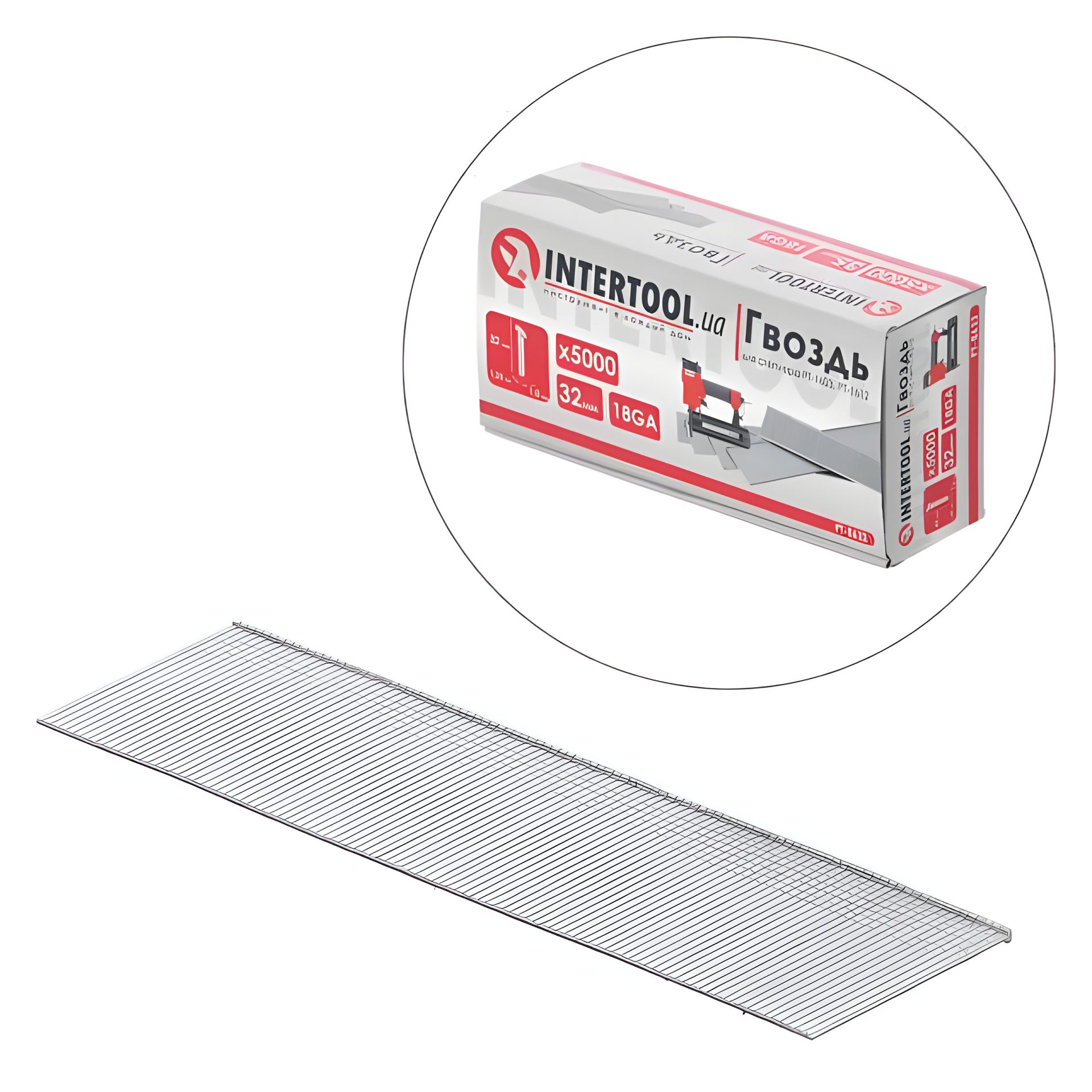 Гвозди для степлера PT-1603, PT-1612, 32 мм, 18GA, 1,0×1,25 мм, 5000 шт/упак INTERTOOL PT-8632