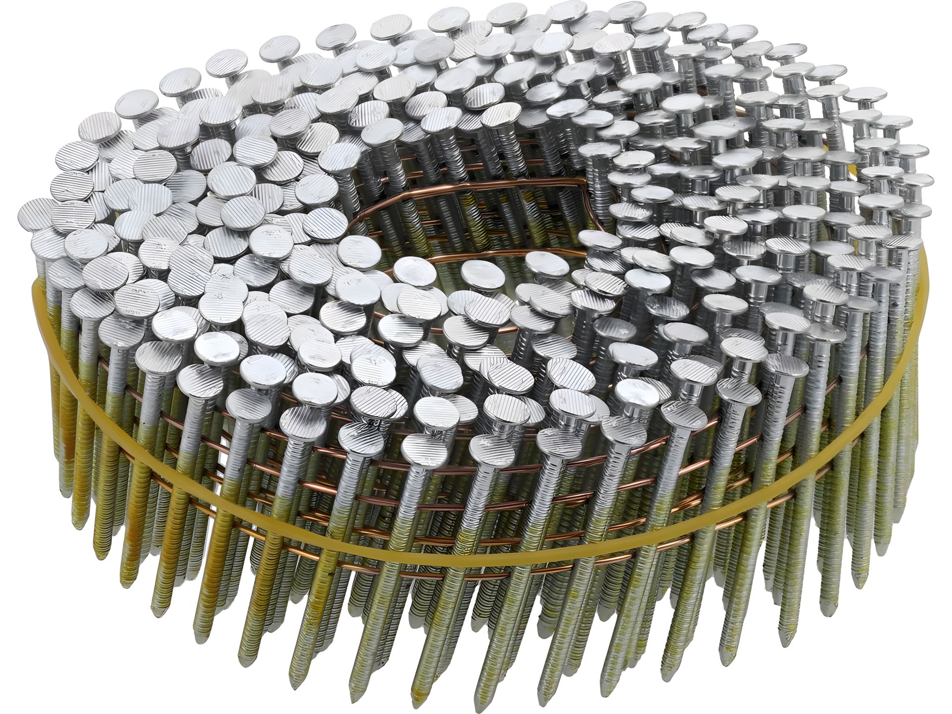 Оцинкованные барабанные гвозди, соединенные проволокой под углом 15-16°, чаще всего используются в кровельных работах, таких как: при креплении гудрона, в строительстве и для соединения деревянных элементов, особенно там, где гвоздь может быть подвергнут воздействию. погодных условий Оцинковка снижает риск появления ржавчины. Барабанные гвозди используются с барабанным гвоздохозяйником. Они подходят для гвоздозабойщика: YT-09212 Диаметр головки: 5,0 мм ±0,25 мм Диаметр соединительной проволоки: 0,71 мм Количество катушек: 300 шт./с. Вес катушек: 38 мм – 0,30 кг 1 коробка = 7,2 тыс.