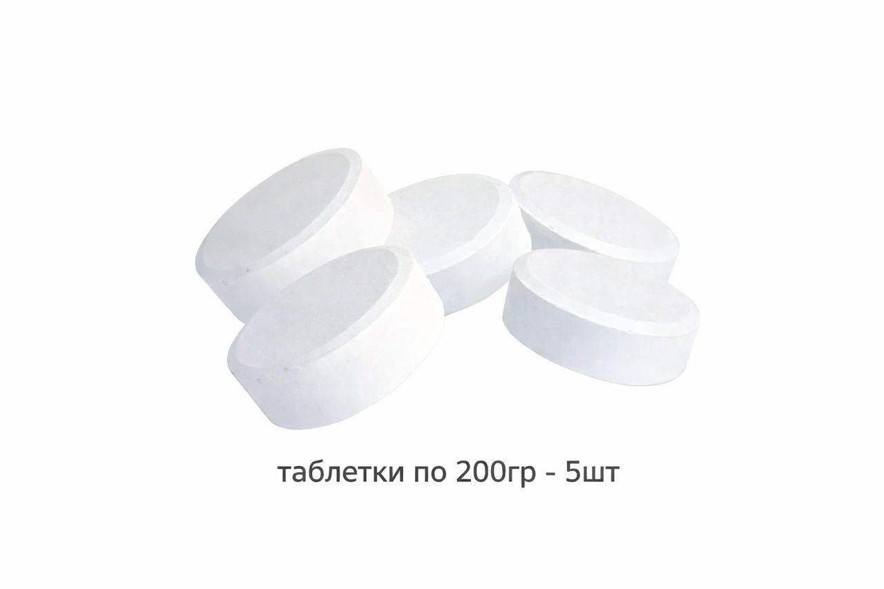 Медленно растворимый, сильнодействующий препарат на основе 90% активного хлора. Рассчитан на постоянную обработку воды в бассейне. Поставляется в виде таблеток (шайб) по 200 гр.