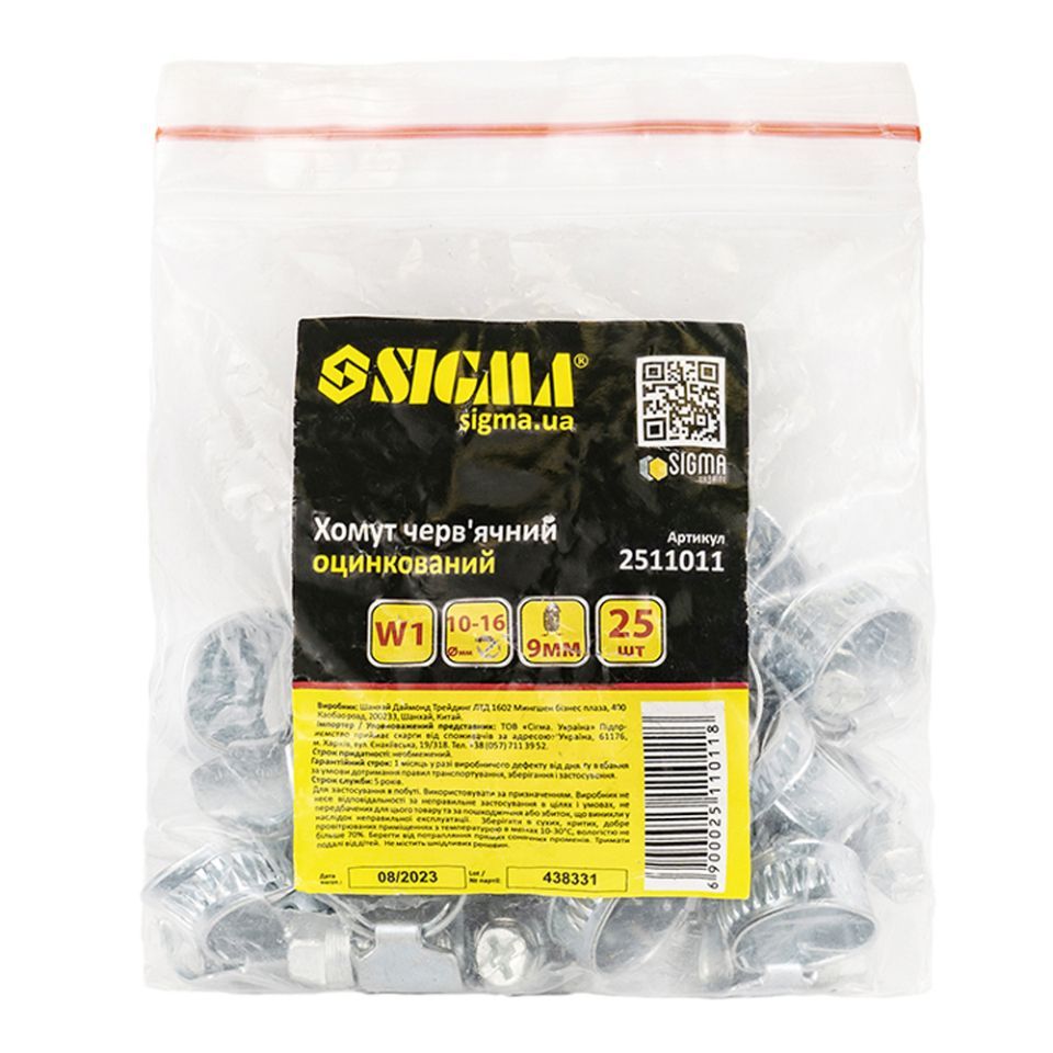 Хомут червячный оцинкованный 9мм D10-16мм 25шт SIGMA 2511011