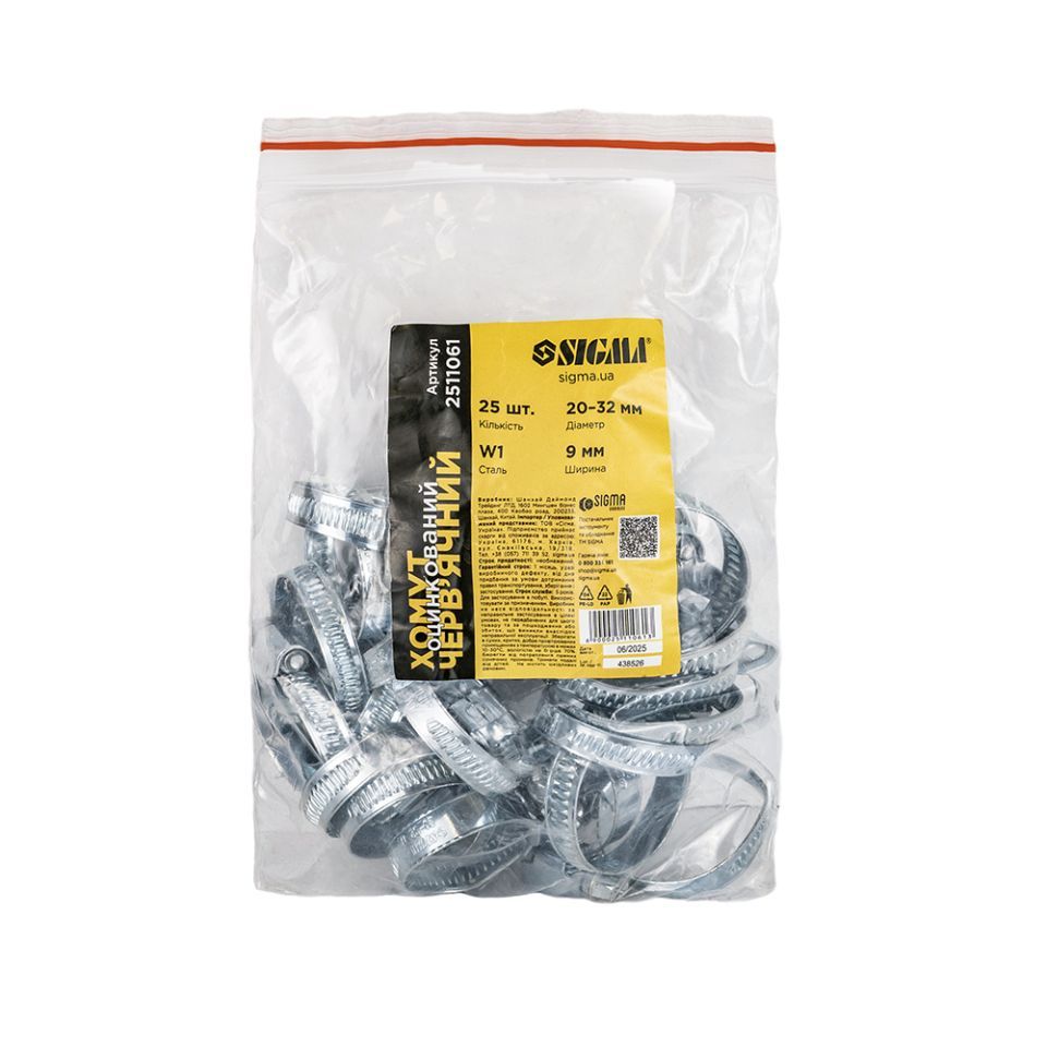 Оцинкованный червячный хомут 9мм D20-32мм 25шт SIGMA 2511061