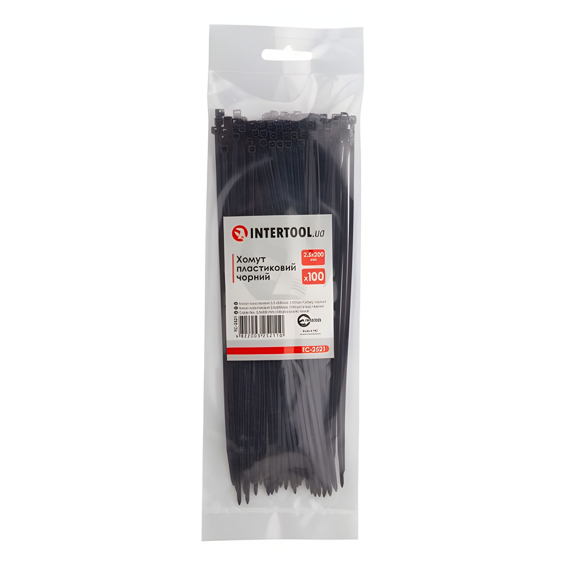 Пластиковые хомуты 2,5×200 мм, 100 шт/упак, чёрные INTERTOOL TC-2521